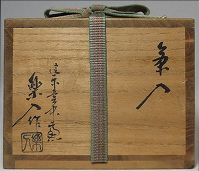Honiwa Rakunyu II, though not a native of Shigaraki moved there and studied with Honiwa Rakunyu I, succeeded to the name in 1962 and set up a studio and a noborigama, later building his first anagama in 1971 which he named, Kochu-gama. Though Rakunyu II made a wide array of Shigaraki ware he specialized in chadôgu tea wares and it shows in his mizusashi, hanaire and chaire in particular. According to a number of Japanese books, Honiwa Rakunyu excelled at making chadogu and many of his pots have attestations by famous chajin and Buddhist priests.