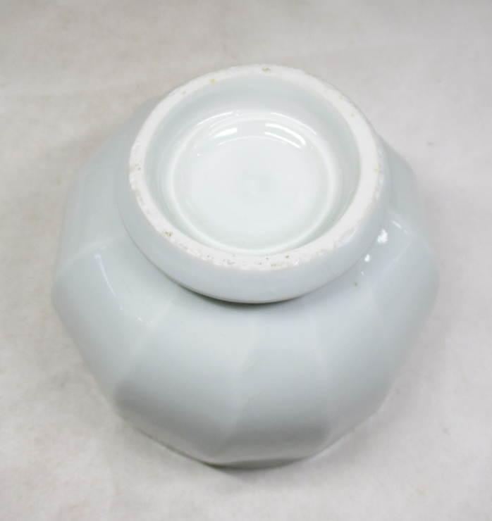 The glaze might be more accurately described as a thin celadon but the true colour is very difficult to come across and portray accurately in photos. The blue colour looks slightly darker where the glaze has settled, such as around the foot-ring. Please contact me for additional photos in different lighting conditions.