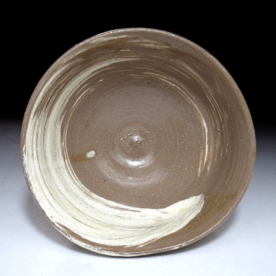 A fine and perfectly balanced chawan or tea bowl by the 2nd generation master-potter Shunji Kato (1892-1979). He was born to the first generation and studied with his father, eventually inheriting the title of Kato Shunji in the year 1912. A book about this famous potter entitled: “The Works of Kato Shunji” was published in Nagoya in Showa 55 (1980). Like his father he mainly worked making tea bowls and innovated the use of traditional Seto ware glazes – here though; the master created a work that clearly hints to the ancient Korean Ido chawan. An utsushi chawan with a traditional hakeme or brushstroke glaze – clearly pointing to the earliest Korean tea bowls. Shunji Kato stems from Seto City in Aichi prefecture and during his long life he became a potter of great renown. He was awarded the title Intangible Cultural Treasure of Aichi prefecture in 1975.