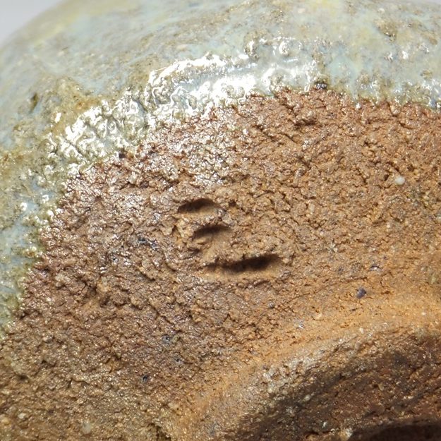 The glaze used for Karatsu-yaki is “wood ash glaze”, which, as the name suggests, is made of wood ashes. It is used as the basic glaze for Egaratsu (Brush decorated Karatsu-yaki), and Muji-garatsu (Plain Karatsu-yaki), as well as most other types of Karatsu-yaki. The second most commonly used glaze is straw ash glaze, which makes use of the cloudy nature of straw ash. It is used for Madara-garatsu (Mottled Karatsu-yaki), and for layering with black amber glaze when making Chōsen-garatsu (Korean-style Karatsu-yaki). Apart from these types of glaze, iron glaze is also often used to make pots.