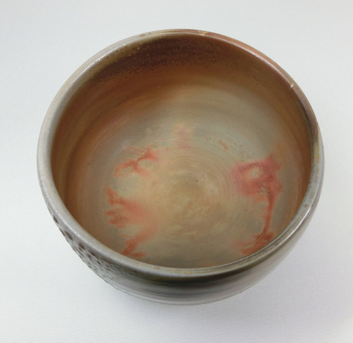 This chawan was made by Masashi Shibaoka (1946-), a potter recognized by the Japanese government as a traditional craftsman in Bizen in 2008 (he is now the 3rd Kozan Shibaoka). Following tradition, he was born in the family of Shibaoka Kozan and from whom he inherited the name. During his youth he studied in Kyoto but then returned to Okayama prefecture to work under his father’s tutelage. He has since been displayed at the Nihon Dento Kogei Ten (Japanese Traditional Crafts Exhibition), among others.