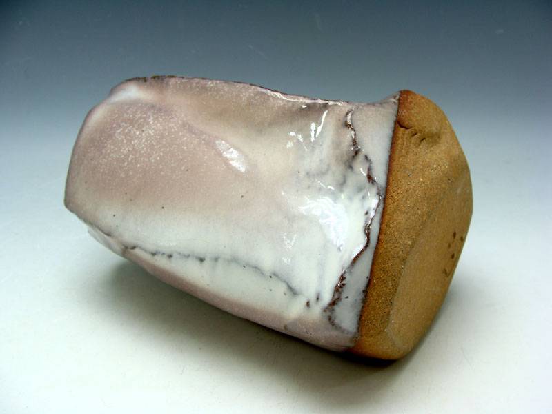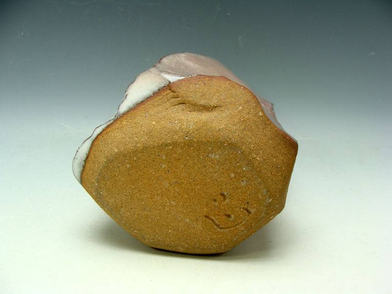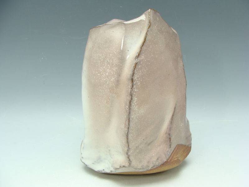 This is a vase with a wonderful creamy appearance, the glaze has turned out pink and white during firing (called Yohen, a firing effect). Viewed from the front, this vase likens itself to the image of Mt. Fuji, one of the most often depicted scenes in Japanese arts.