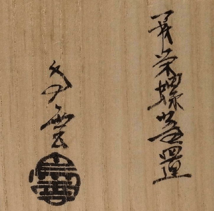 The futaoki, stamped by the potter has no chips or cracks and is in mint condition. Comes with the original quality paulownia wooden box with kiln stamp and calligraphy on the lid.