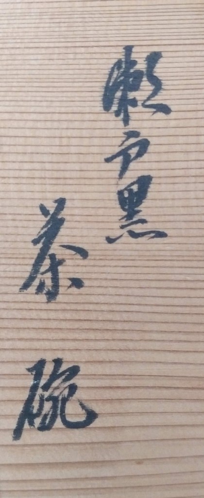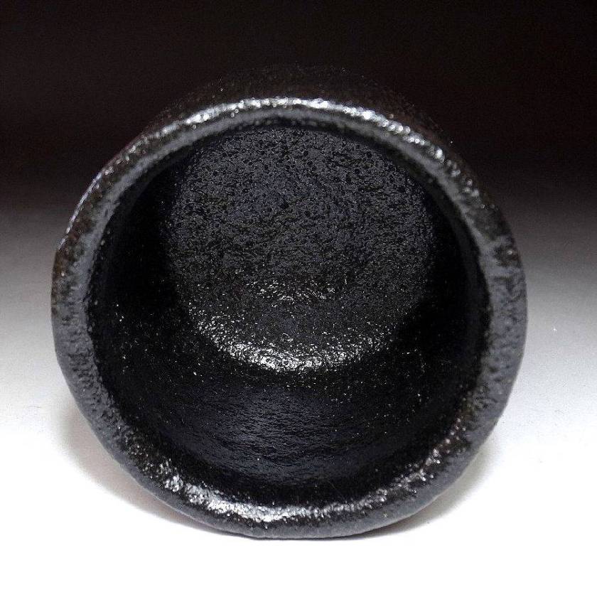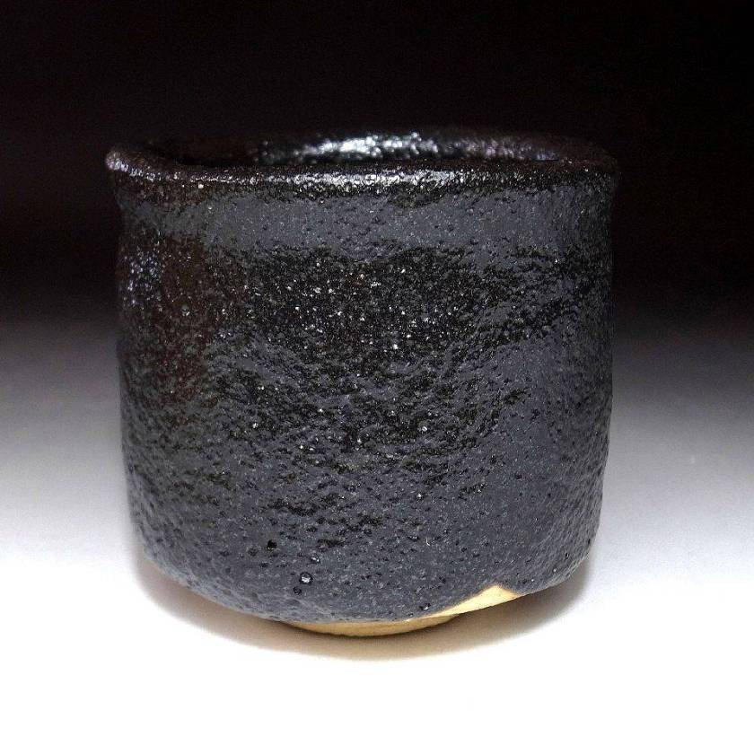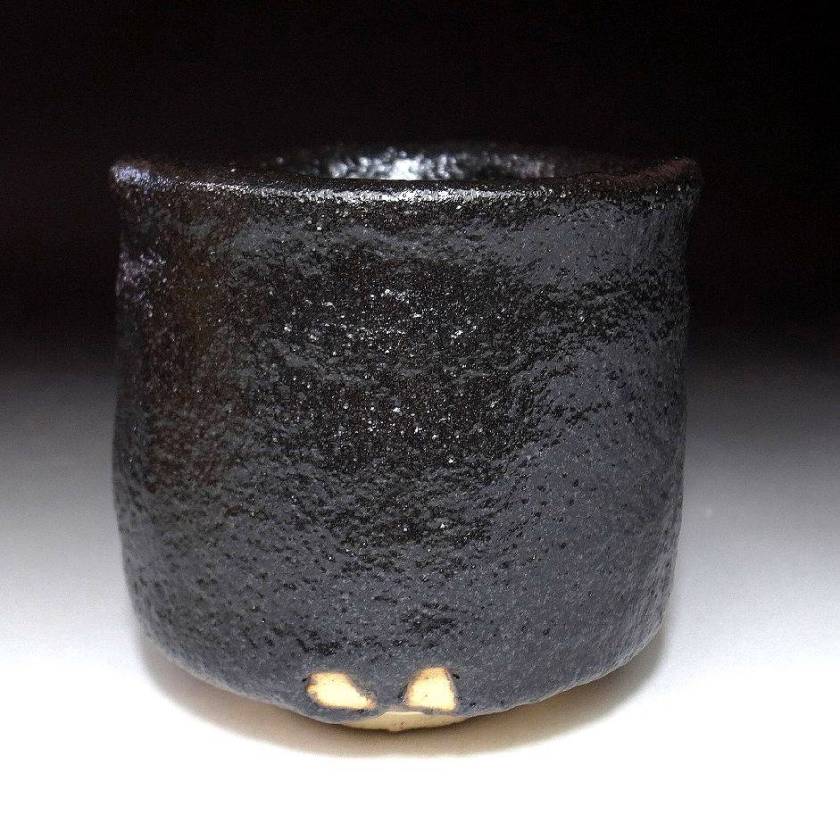 For your consideration, a high quality Seto-guru piece by Shibata Yoshihiro (Kōkan). 5 Generations of the Shibata family have been running the Hōsen Kiln in Mino prefecture since the Keiō era (from 1971 in Seto). Seto pottery belongs to the pottery traditions of the Mino region in Japan which has been renowned for centuries for producing high-quality Shino, Oribe, ki-Seto, along with the style shown here, guro-Seto or “black” Seto. The deep black glaze seen here is applied thickly, applied beautifully around the unglazed foot of the bowl—proudly highlighting the fine clay used in its construction. This chawan with its tsutsu shape and thick black glaze is ideal for cold winter days.