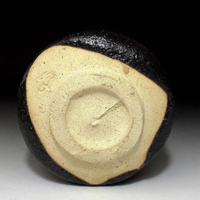 From the hefty presence you get when handling this tea bowl to the thick black glaze with its peculiar texture. This is a chawan that will grow on the new owner each time it is held and viewed.