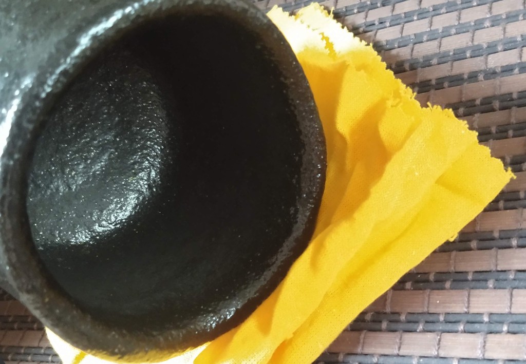A similar kind of black tea bowl is found in Kyoto, known as “kuro-Raku”. It is similarly removed from the kiln during firing and subject to rapid cooling, and while it shares the same method of applying a jet black metal lacquer, it differs from the Mino style’s high heat and potter’s wheel clay throwing, whereas kuro-Raku is completely handmade with low heat.