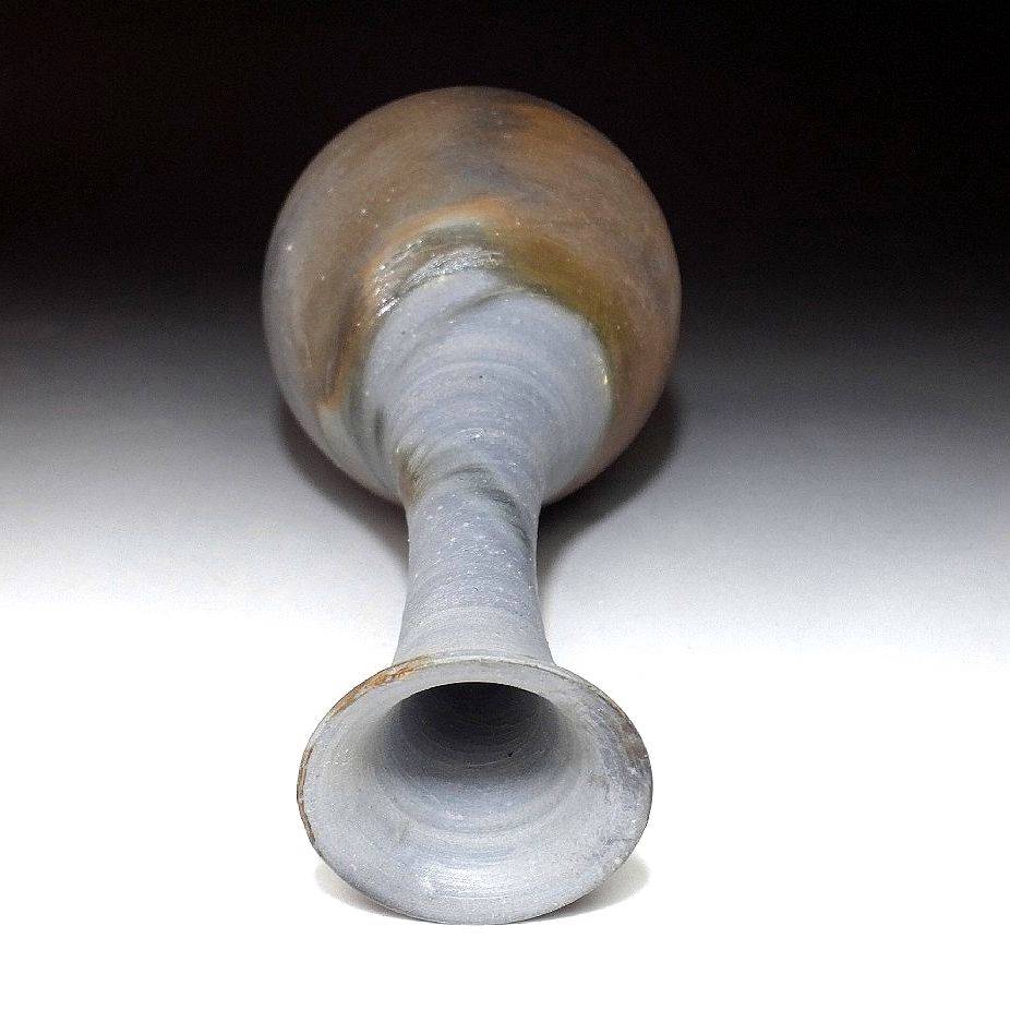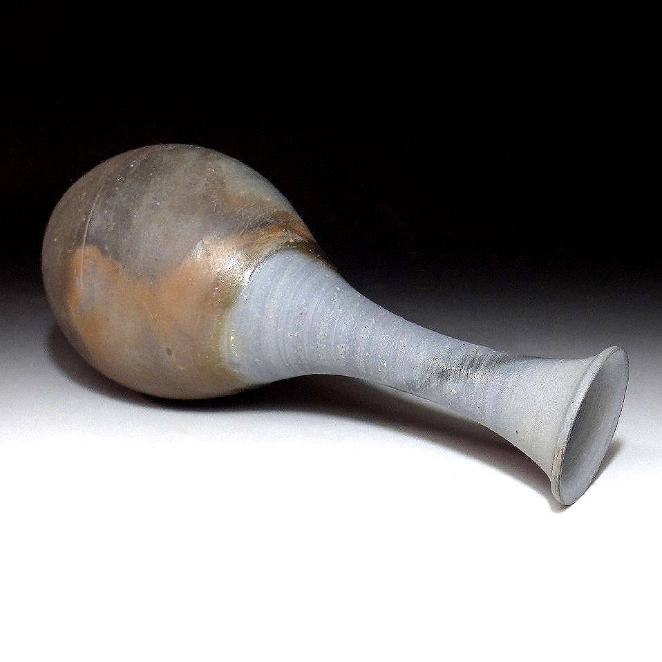 This is a chic Bizen ware vase by Toko Kaneshige. Toko is the current successor of the illustrious Kaneshige family. The Kaneshige family name is a staple of Bizen ware and their kiln named Rito-en gama is a famous one. The Kaneshige family is one of the oldest in Bizen and having a lineage that goes back over a hundred years, it has been actively involved in its evolution. Showcasing a variety of yohen firing effects this is surely a piece that will liven up your bed, living room or office.