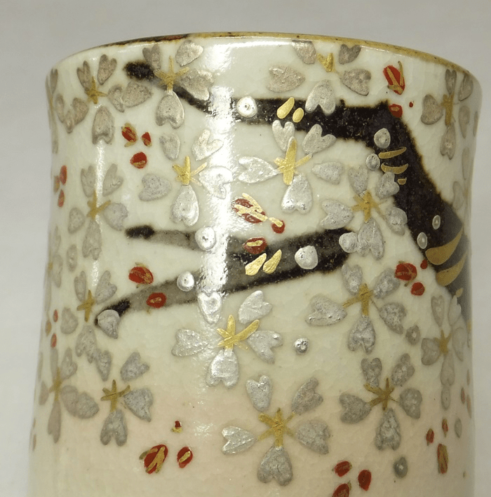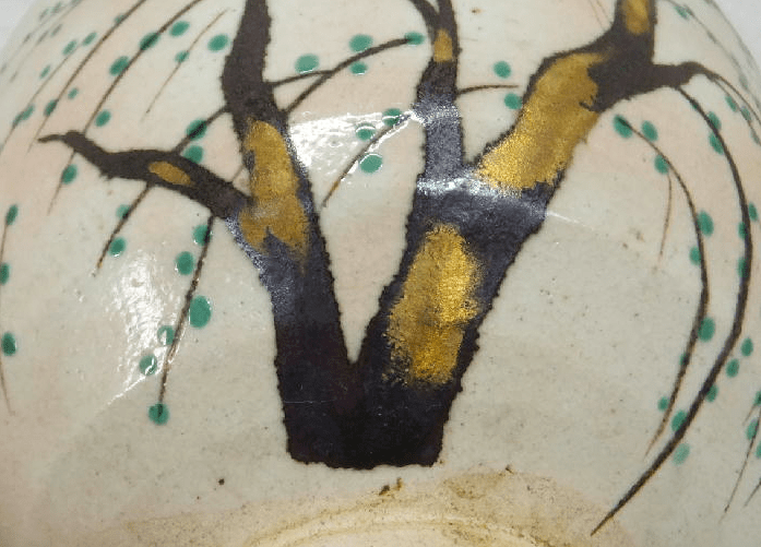 Aya Fukumori’s work often has hand painted decorations that at times interact with the firing effects of her kiln. The interaction often has a childlike manner of it interacting with other aspects of the pottery through the yohen or firing effects – the path of the flame. She’s a true master of the Iro-e technique, which is a technique used in the decoration of ceramics. The technique was developed in China around the 12th century for white glazed earthenware and by the 14th it was used on clear glazed porcelain. In modern times Arita yaki is the main type of ware using this technique. One can make a number of main distinctions in the use of Iro-e. The most famous sub-styles and their short description can be seen below.