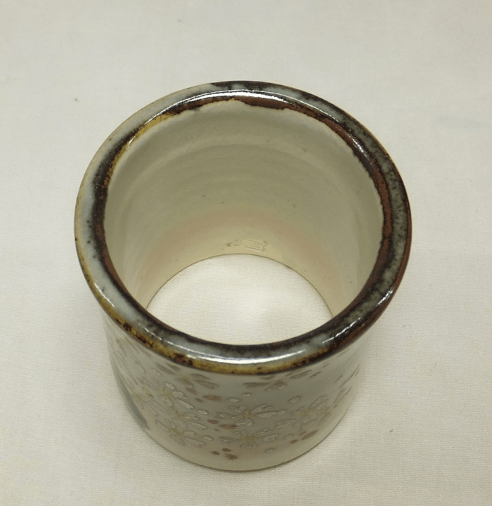 For sale is a charming set of matching Chano-yu utensils from the same pair of hands. The set consists of a futaoki, lid rest and a chawan by famous female potter Aya Fukumori (1936-). Aya Fukumori is from and lives in Mie prefecture. She’s a stellar artist, even though born female (which at the time and place wasn’t always advantageous), she became a fully accepted and recognized potter. Together with her partner they oversaw construction of their kiln titled Komorigama and they operated it for years. Now Morihiko Fukumori is overseeing activities at the kiln. Works by Aya Fukumori works don’t come by often and these charming items have been in my collection for many years.