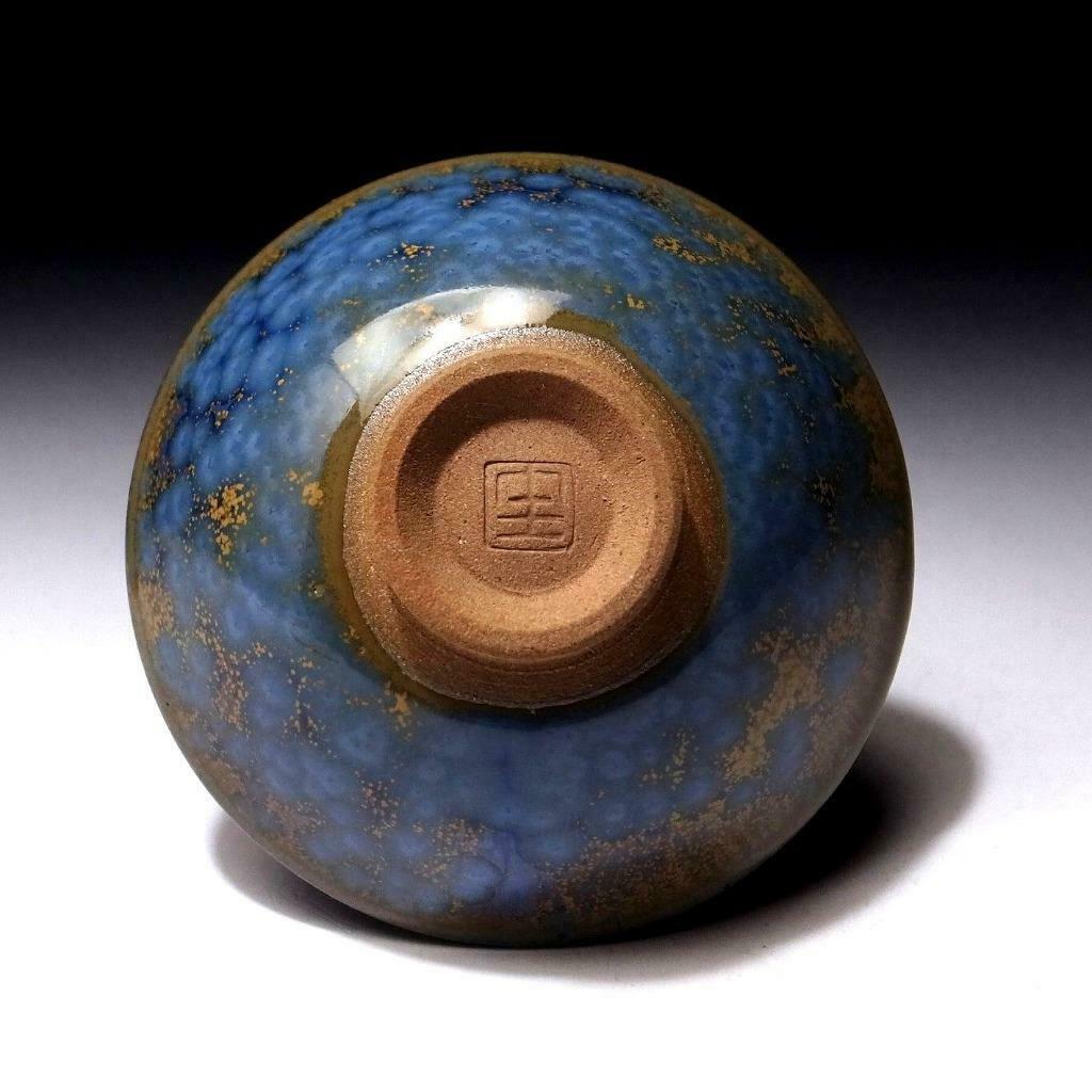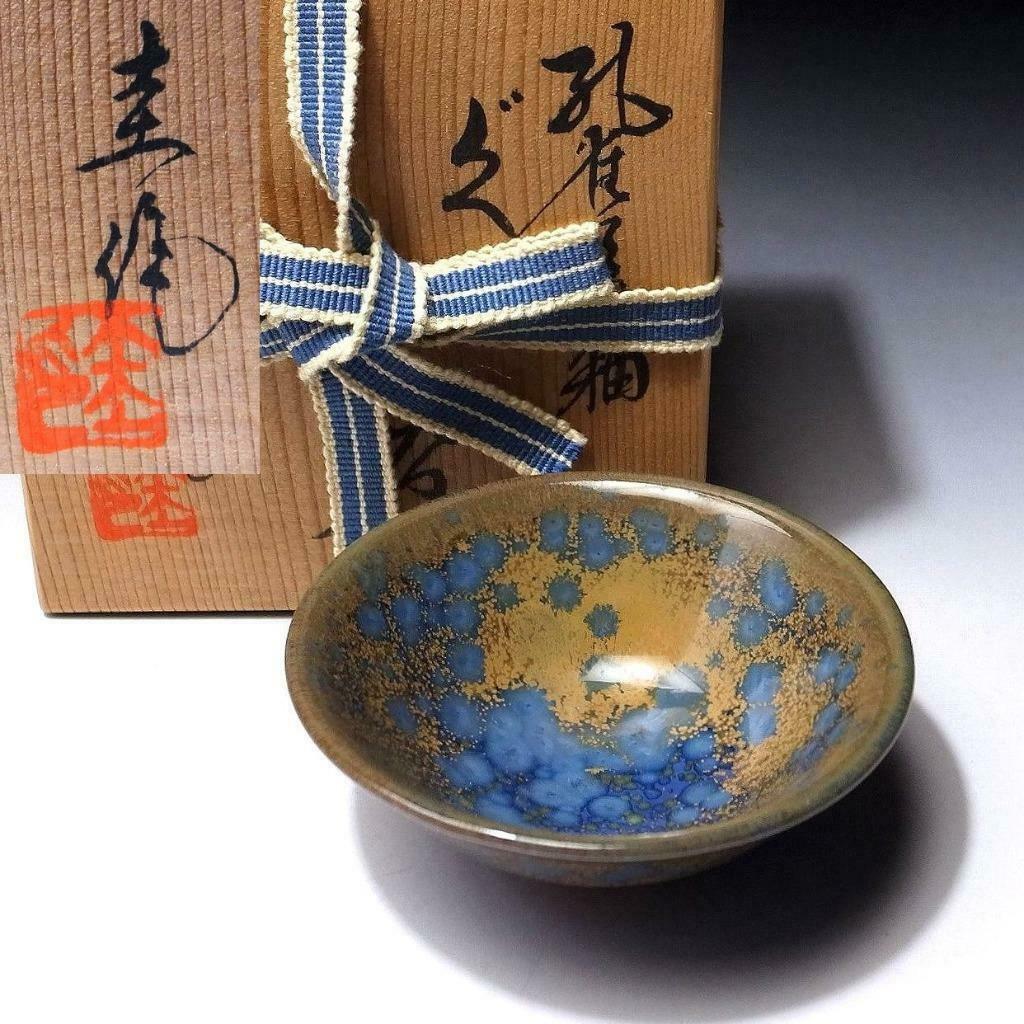 This stellar tenmoku guinomi was made by the famous artist Kei Wakao. He was born in Gifu in 1967, first son to the legendary artist and potter Wakao Toshisada. Toshisada Wakao had a kiln in the town of Tajimi, Gifu Prefecture where Kei Wakao decided to study and so took up the family craft from a young age and later went on to conduct formal studies at university. After graduating he exhibited widely and continually strove to generate new and interesting clay forms. His talent for perfecting difficult and innovative glazes gained him some notoriety and, as a result, he has won a number of awards including first prize at the Kanazawa International Ceramics Festival in 1998 and the following year at the Shigaraki Ceramics Arts Exhibition. Today he is a well-known name in the world of Japanese ceramic arts, and has even gained a following overseas. His student Makoto Wakao is also well respected potter and works in his teachers style are highly esteemed. Work by these masters is not easy to acquire and I’m very pleased to provide a chance for someone to add his work to his or her collection. Read on to see an extensive summary of his illustrious career.