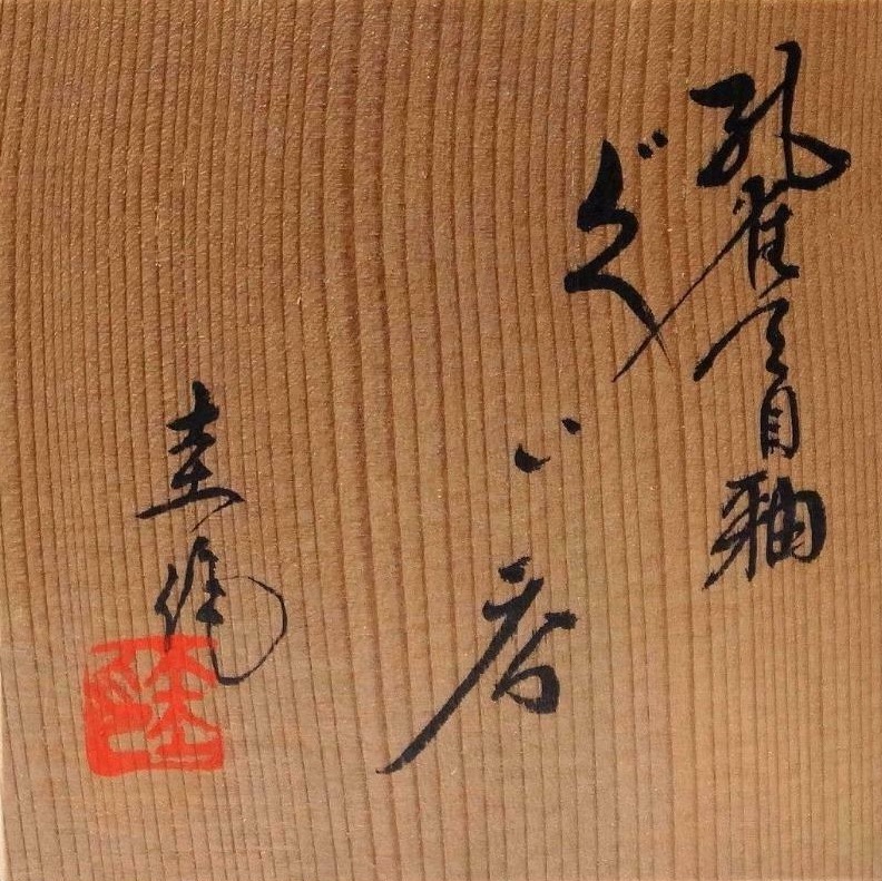 This guinomi is in mint condition and there are no flaws to mention here. Comes with the original high quality shiho-san paulownia tomobako with kiln stamp and calligraphy on the lid plus a pamphlet about the potter.