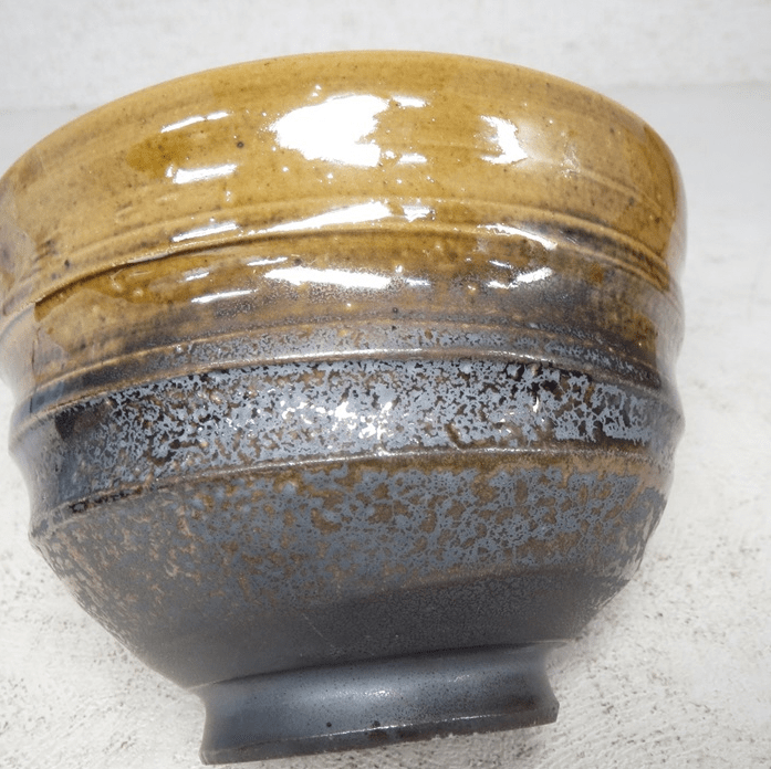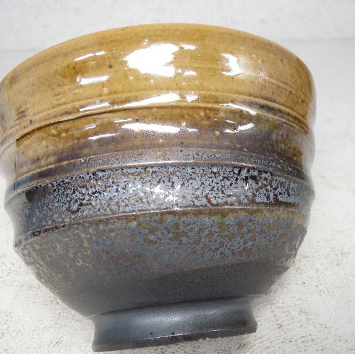 This stellar chawan was made in the Chindai kiln which is located in Hyogo prefecture, Japan. The kiln still produces traditional Tamba ware and honours the ancient techniques of firing pottery in an anagama kiln, as this magnificent natural glaze attests. The firings may take anywhere from 48 hours to 12 or even more days. The kiln generally takes the same amount of time to cool down as rapid cooling would cause much breakage. Records of historic firings in large kilns shared by several village potters describe several weeks of steady stoking the fire.