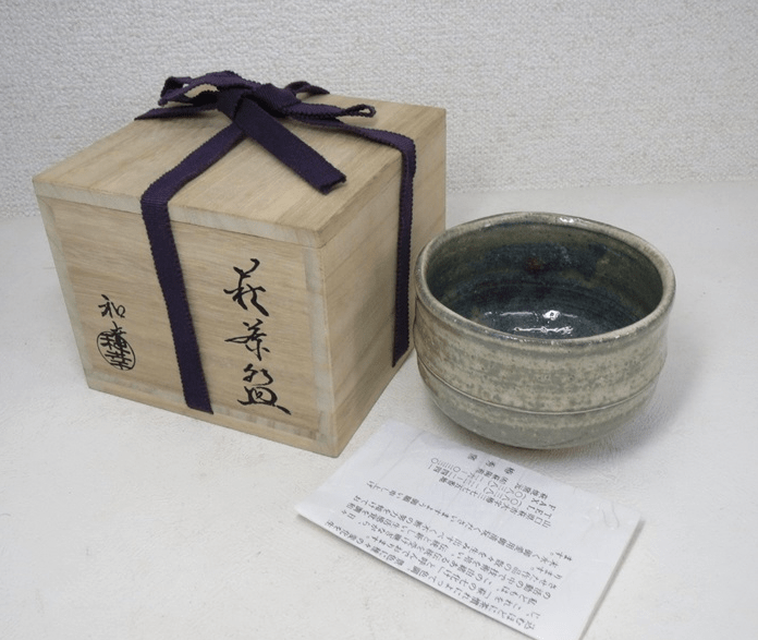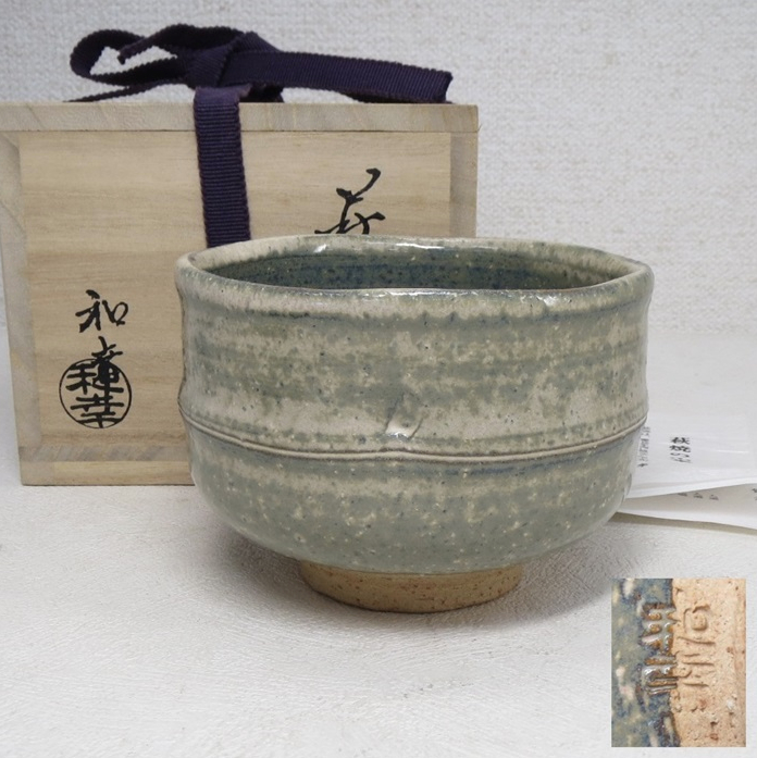 The chawan has no chips or cracks and is in excellent condition. Comes with the original high quality shiho san paulownia tomobako or storage box with kiln stamp and calligraphy on the side plus a pamphlet about the potter. Quite a subdued yet charmingly atmospheric Hagi chawan.