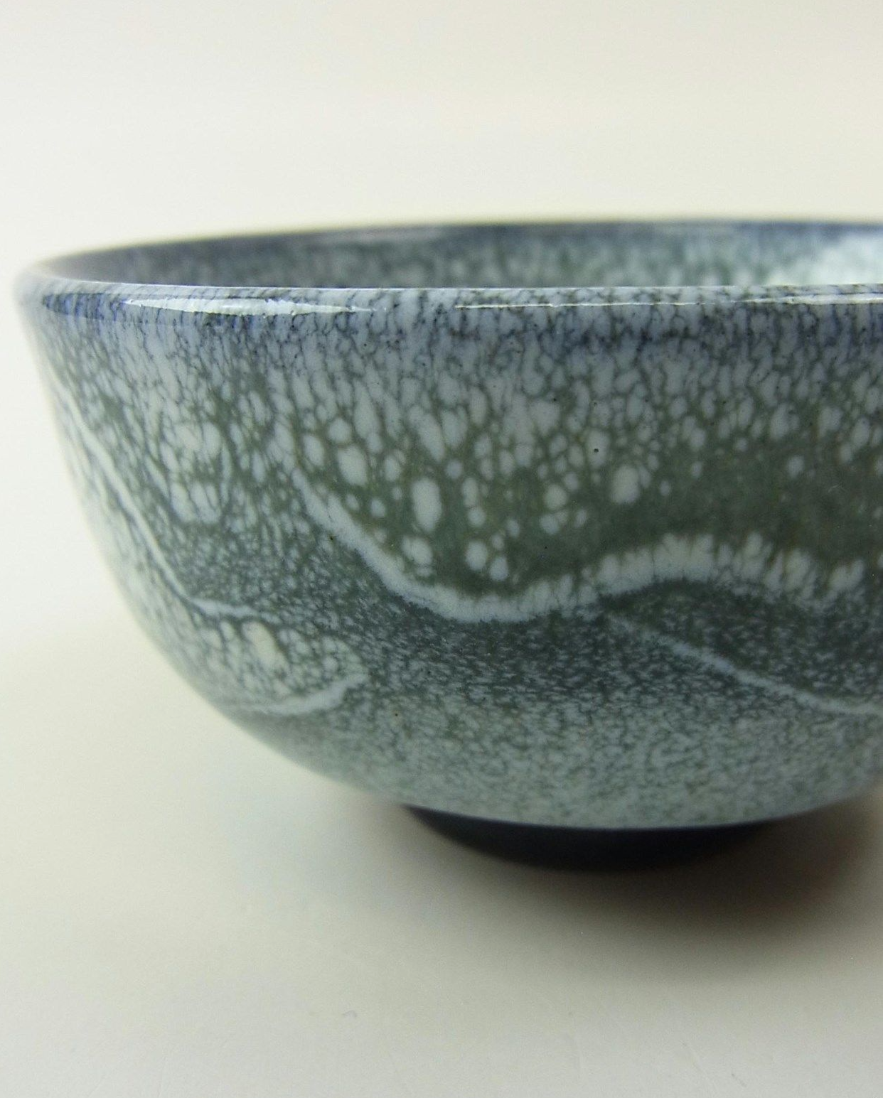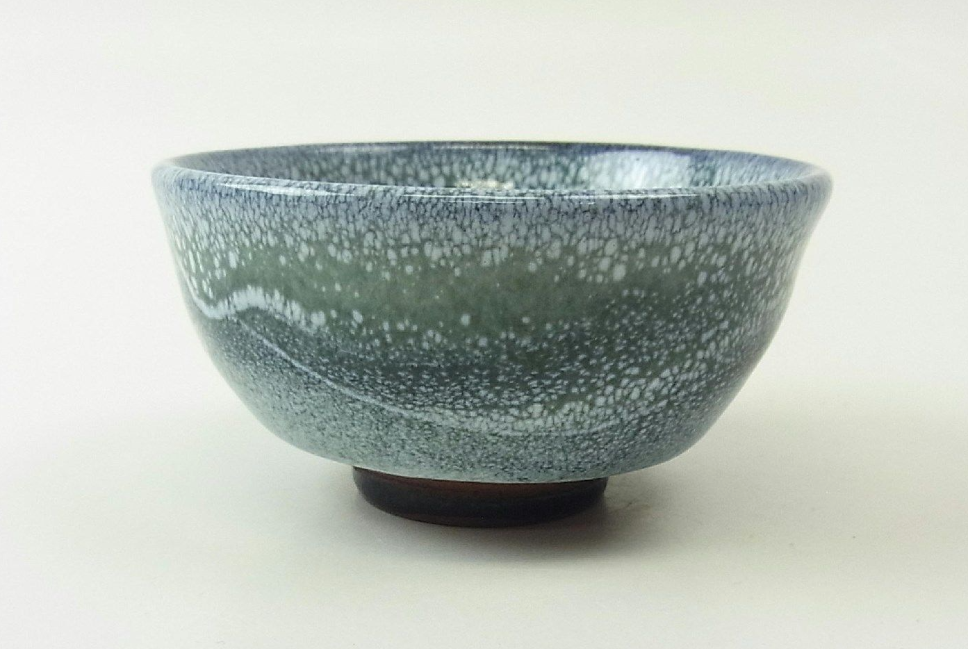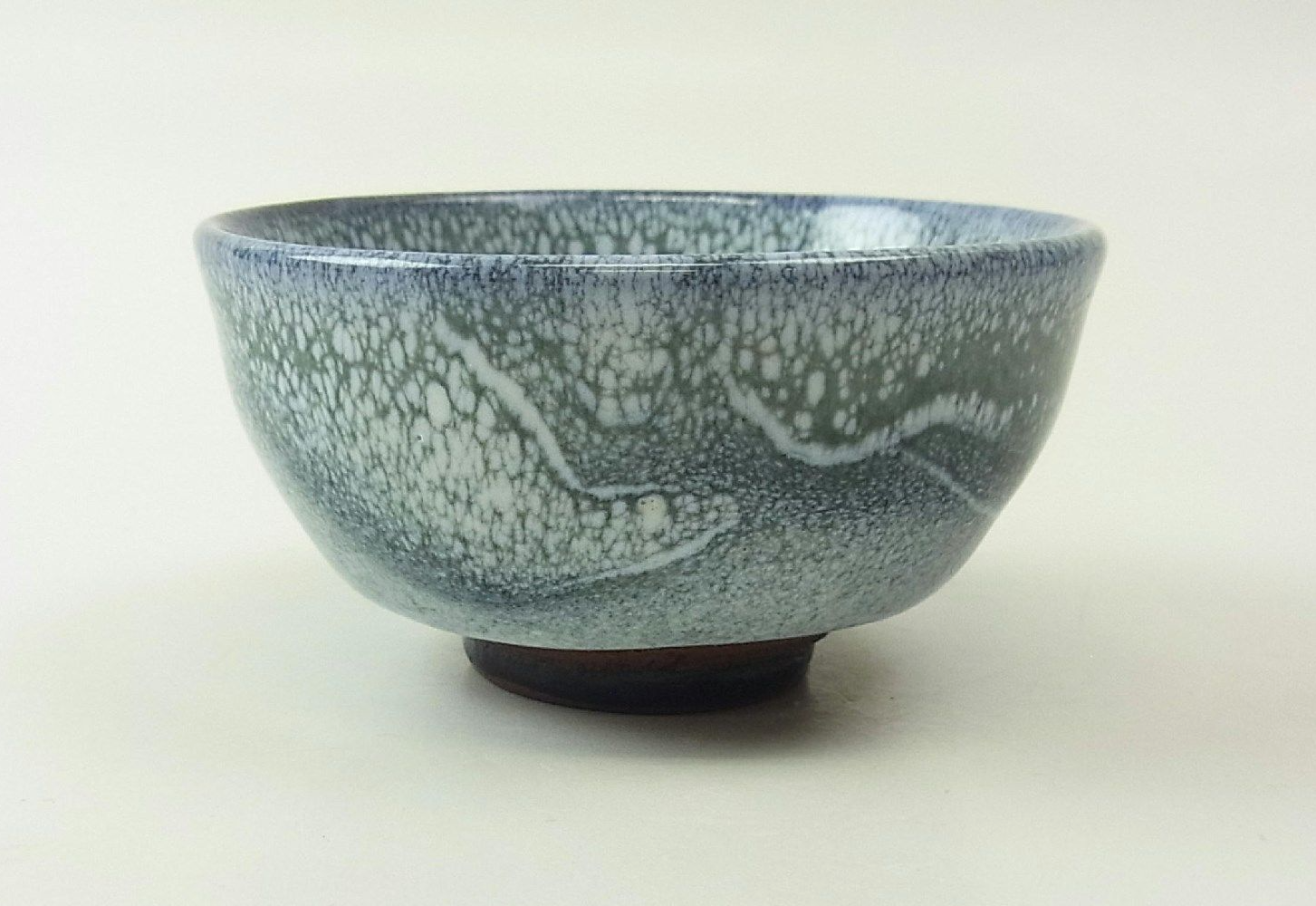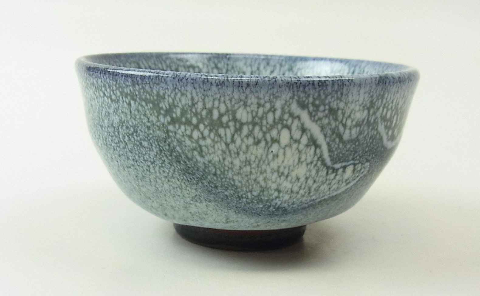 This is a mizuiro or sky-blue oil-spot guinomi, saké cup by the retired potter Suzuki Toshiyuki who is accredited with the revival of Daisen ware. He build his own climbing kiln in 1981 and named it Kuko-gama. He received the title ‘Dentou-Kougei-shi’ which loosely translates to the title of ‘traditional skill holder’ in Tottori prefecture.