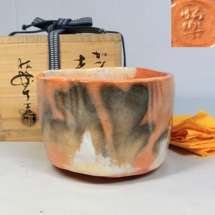 The chawan is in excellent condition with no chips or cracks. As shown it comes with a high quality paulownia wooden tomobako, storage box with calligraphy and seal on the side, a dedicated tomonuno or tea cloth and a pamphlet about the potter.
