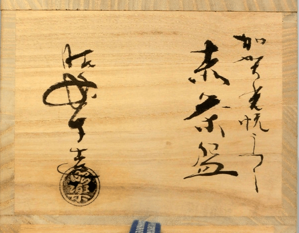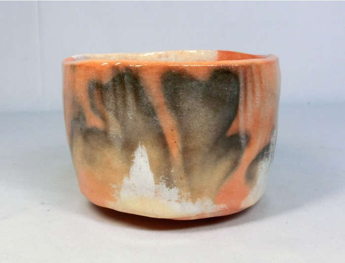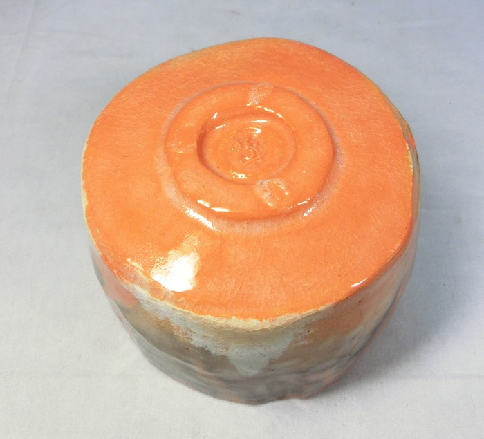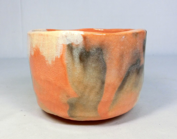 This tea bowl was fired in the kiln of one of Kyoto’s best known Raku yaki potters, the third generation Sasaki Shoraku (1944-). The Shoraku line began when the grandfather of the current potter established a kiln near the famous Kiyomizu temple, nestled at the foot of the eastern mountains in Kyoto. In 1945, the kiln was moved to Kameoka near the Yada shrine where it remains till this day.