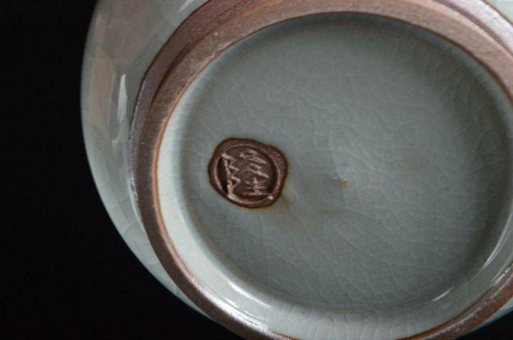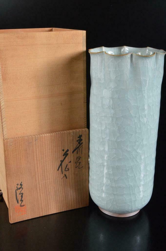 The vase is stamped by the potter on the foot and has no chips or cracks. Condition is excellent. Comes with the original paulownia tomobako, storage box with kiln stamp and calligraphy on the lid.
