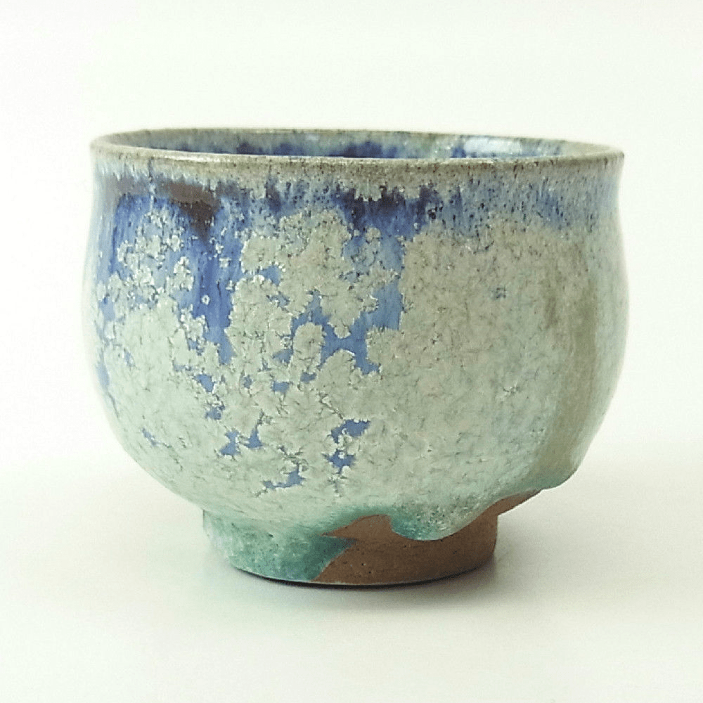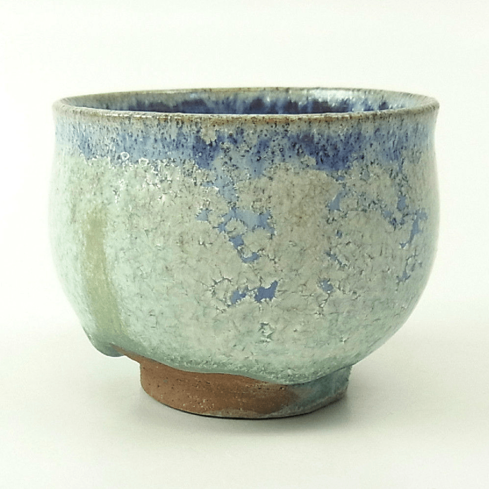 This is a guinomi or saké cup by master potter and internationally acclaimed artist Tetsuaki Nakao. Born into a family of potters in Saga prefecture in 1952, he initially was set on a academic future in the field of philosophy but midway through decided to, wholeheartedly pursue pottery instead. It is glazed with his characteristic glaze of his own devising he titled Ginga-yuu, which translates to Galaxy glaze. This cup is titled ‘Haru Ginga-yuu guinomi’ or ‘Spring Galaxy saké cup’, after the first of the seasons (characterized by the outcome and colours in the glaze). Tetsuaki Nakao has described it as follows.
