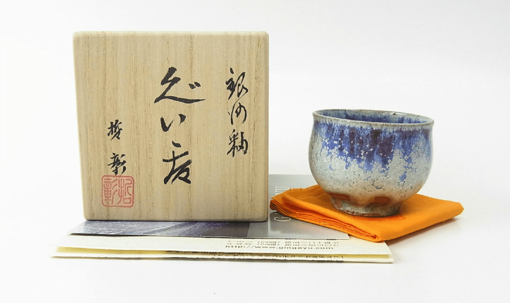 This guinomi is unused and there are no cracks or chips. Comes with the original quality shiho-san paulownia tomobako with calligraphy and potter’s stamp on the lid, a dedicated tomonunu or tea cloth with, plus an informational pamphlet about Tetsuaki Nakao.