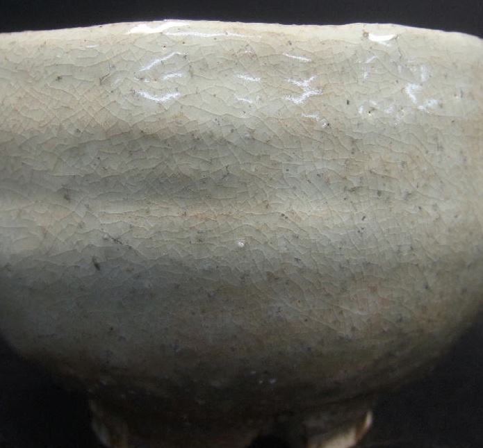 This is a first class chawan and an excellent example of Hagi ware. Elegant in shape, unassuming in appearance and a feeling of warmth. From the triple legged foot, to the size which is close to works specifically made for the Tea ceremony. The glaze is also excellent and one of the main characteristics of Hagi ware. It features fine crackles and an array of colours that create an abstract landscape. Underneath, the area around the koudai or foot ring has Noutomi Choun’s defining scraped texture showing a darker subdued colour of the clay beneath the glaze.