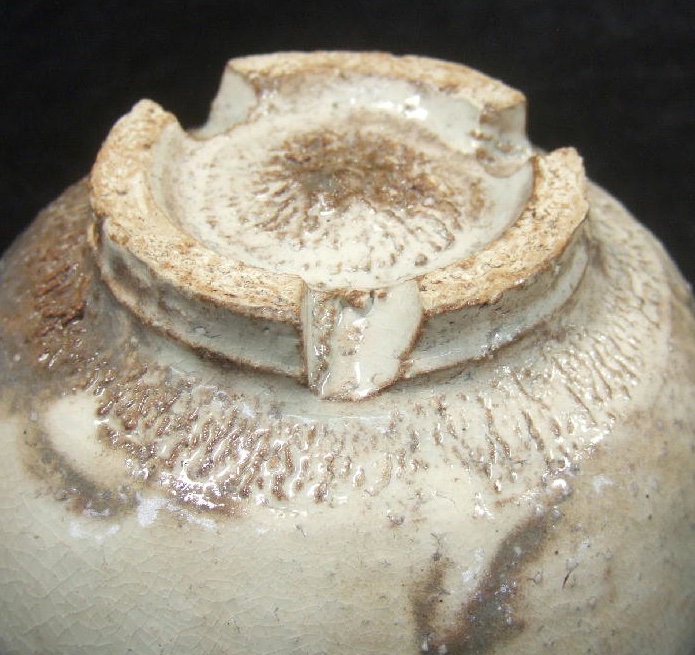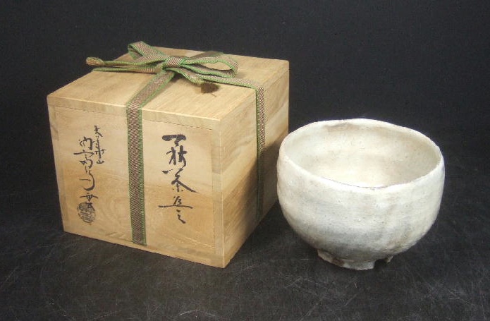 This is a traditionally made Hagi ware chawan by the famous potter and former kiln-owner Noutomi (also spelled Notomi or Notoumi at times), Choun (1921-1995). He started studying pottery in 1951 and founded his kiln called O-Kazan-Choun gama. It is said his career began as a pottery wholesaler. Opened the kiln in 1967 and became independent. A little further down the road he received training at various other kiln sites. He produced mainly handcrafted objects and Hagi tea utensils.