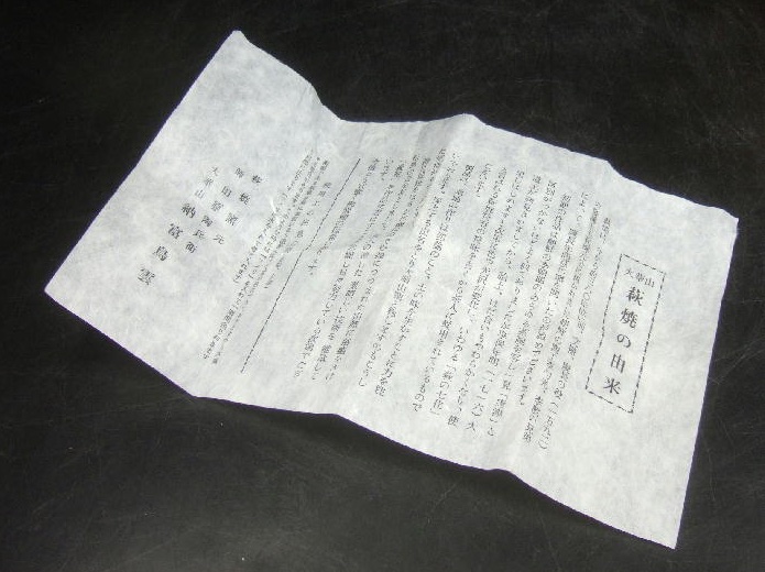 The kiln is still active to this day and is headed by one of his sons who followed in the Choun name. The kiln and family proudly continue to create traditional Hagi pottery. Hagi ware is associated with the locale around Hagi City and its location in Yamaguchi prefecture. There is much information available on the current successor and family working at the kiln but about Noutomi Choun it was difficult to source confirmed information. Noutomi Choun was a great potter who won numerous awards and prizes during his life and also held the title Intangible Cultural Asset of Yamaguchi Prefecture.