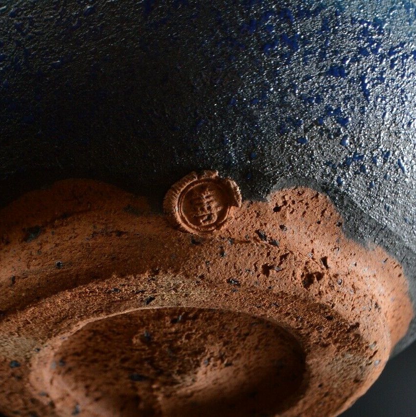 The chawan bears the master’s seal and condition is mint. Comes complete with the original high quality shiho san paulownia tomobako or storage box with kiln stamp, calligraphy & artist signature on the lid and a dedicated tomonuno or tea-cloth. A masterpiece in the style that is unique to this artist and for which he is rightly famed and remembered for. The only saidei chawan I have ever seen by this artist.