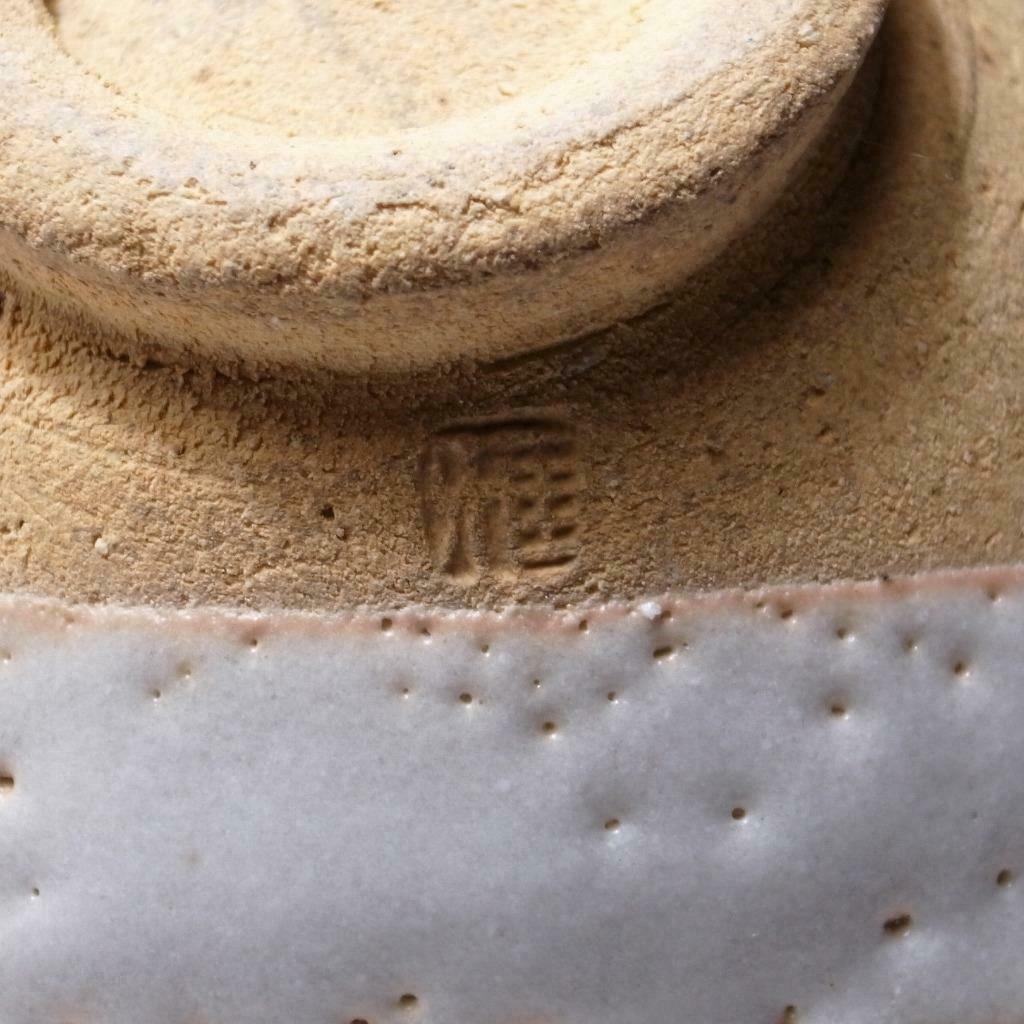 Pottery has been produced in the Mino area of Gifu prefecture since the Kamakura period (the end of the 12th century). The main names synonymous with Mino are Oribe, Shino and ki-Seto. It is said that Shino was the first ware to decorate its pieces with brush-drawn designs as shown on this example. Before the use of brush-drawn decorations potters had been carving, incising or were appliquéing their designs and fantasies.