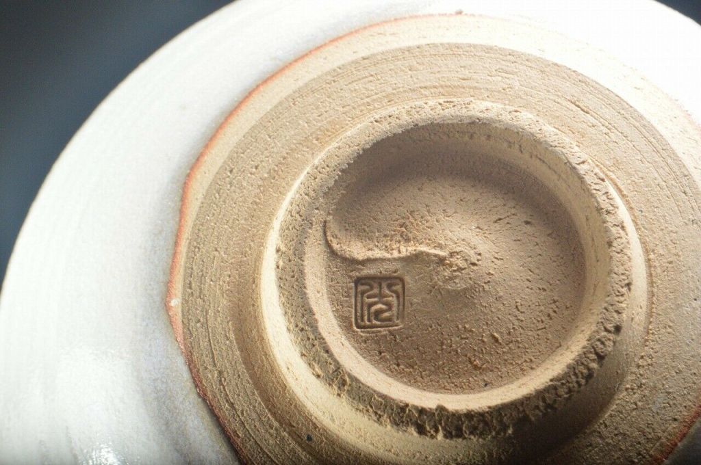 This is an elegant white chawan or ceremonial tea bowl made by the celebrated potter Mitsuo Kano (1903-1970). Art seems to have ran in the family as his brother became a noted artist as well. Born as the younger brother of Kano Matsutani its no surprise they encouraged each-other. Although their work is different from one another, being that Kano Mitsuo had an interest for a wide range of techniques and methods used in the making of pottery. His brother’s artistic influence had been more specific and he focused fully on a select number of techniques for his entire career. Mitsuo having experienced a more diverse curriculum in his formative years, the work he left shows several styles.