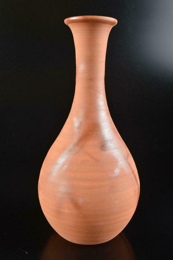 Bizen ware is a type of Japanese pottery most identifiable by its iron-like hardness, reddish brown colour, absence of glaze and markings resulting from wood-burning kiln firing. Bizen clay has a high iron content and traditionally a lot of organic matter in it that is unreceptive to glazing. The clay can take many forms while retaining its strength. The surface treatments of Bizen wares are entirely dependent on yohen or kiln effects produced by the firing. Pine ash produces goma, or “sesame seed” glaze and rice straw wrapped around pieces creates red and brown scorch marks called hidasuki. The placement of pieces in a kiln causes them to be fired under different conditions, with a variety of different results. Considering that one clay body and type of firing is used, the variety of results is remarkable.