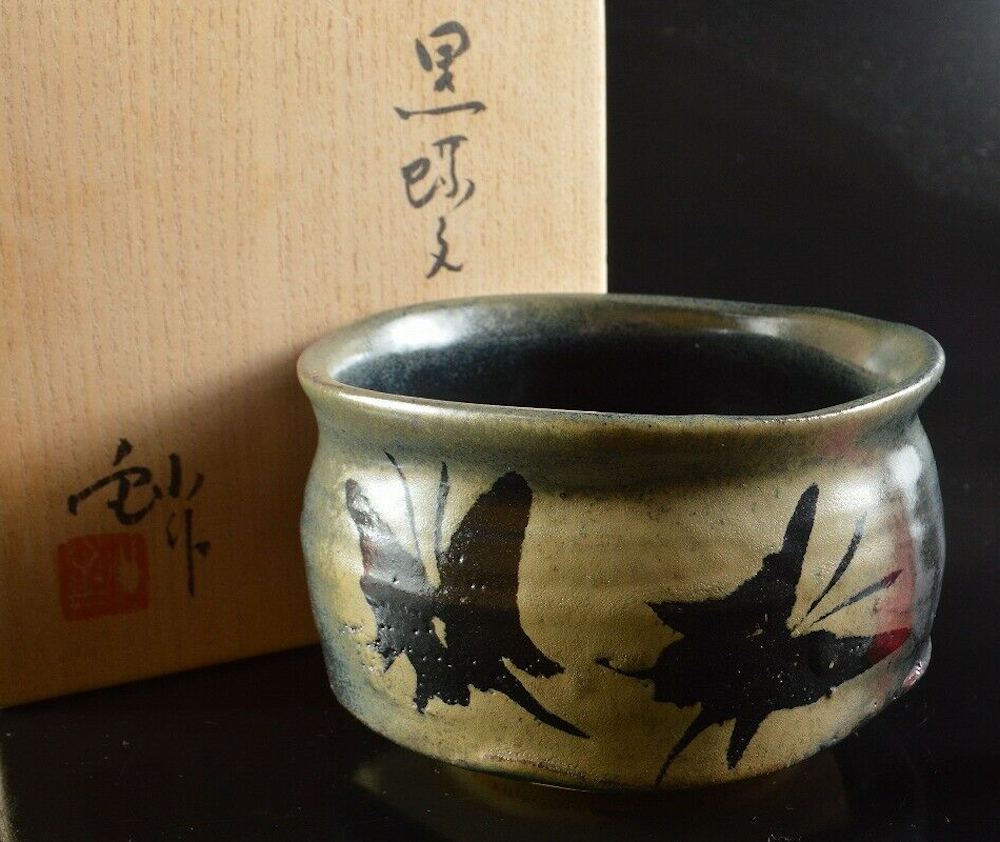 A pristine chawan or ceremonial tea bowl by the 1st class potter Sho Kato (1927-2001), who in the year 2000 was designated as a Human Cultural Treasure of Aichi Prefecture. Sadly he passed one year later. This chawan features his signature butterfly or ‘Chōu’. These butterflies are a telltale sign of Sho Kato’s work.