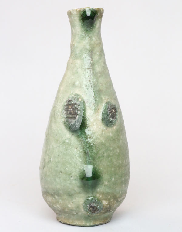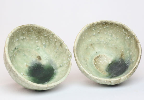 This is a sake set consisting of a tokkuri or sake bottle and 2 guinomi or sake cups made by the potter Koichi Ohara (1974-). Koichi Ohara was born and raised in Tokoname City which is, as you are no doubt aware, one of Japan’s foremost pottery related towns. Most families in Tokoname have been potters for generations and kilns are often hundreds of years old! Koichi was not born in one of the numerous lineages and wasn’t raised alongside pots and jars. This work is unlike most Tokoname ware and carries with it a rustic and natural atmosphere coupled with impressive yohen effects (firing effects). The glaze is of Koichi’s own devising and is further influenced through the wood-firing.