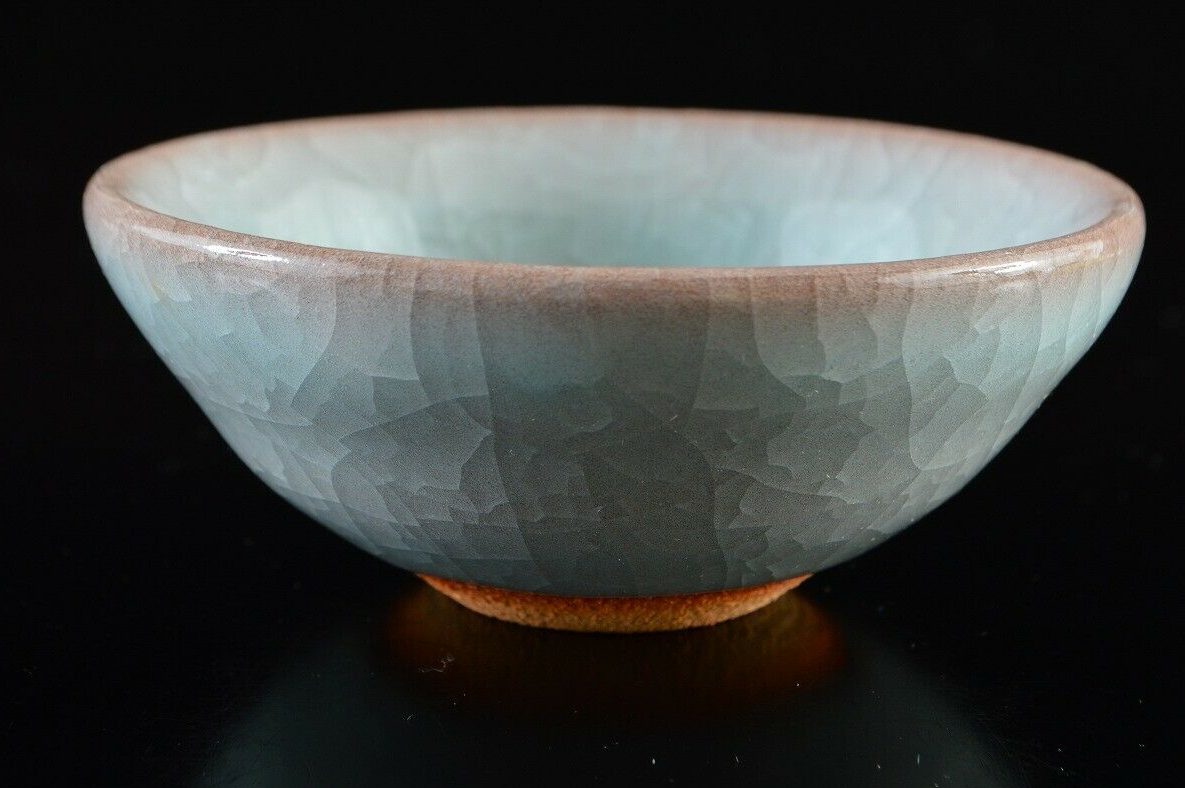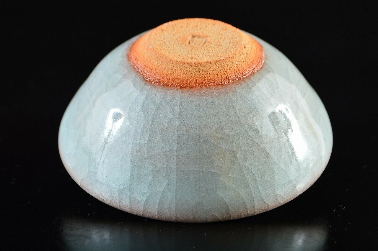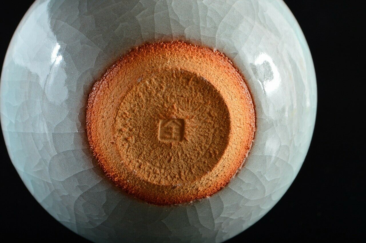 Listed for reference purposes, this set of 2 celadon guinomi, saké cups was made by the famous potter Zenko Yasuda (1926-2011). Zenko Yasuda, who’s real name was Masahiro Yasuda was born in Kyoto in 1926. He studied at the Kyoto Craft & Fabric University and specialized in the making and building of kilns. Afterwards he studied pottery under the 6th Kiyomizu Rokubei (1901-1980). After going independent he build a kiln called Rokushin No Kama in Kyoto. Zenko Yasuda created unique and distinctive stoneware using complex glazing techniques. He passed in 2011 at the age of 86.
