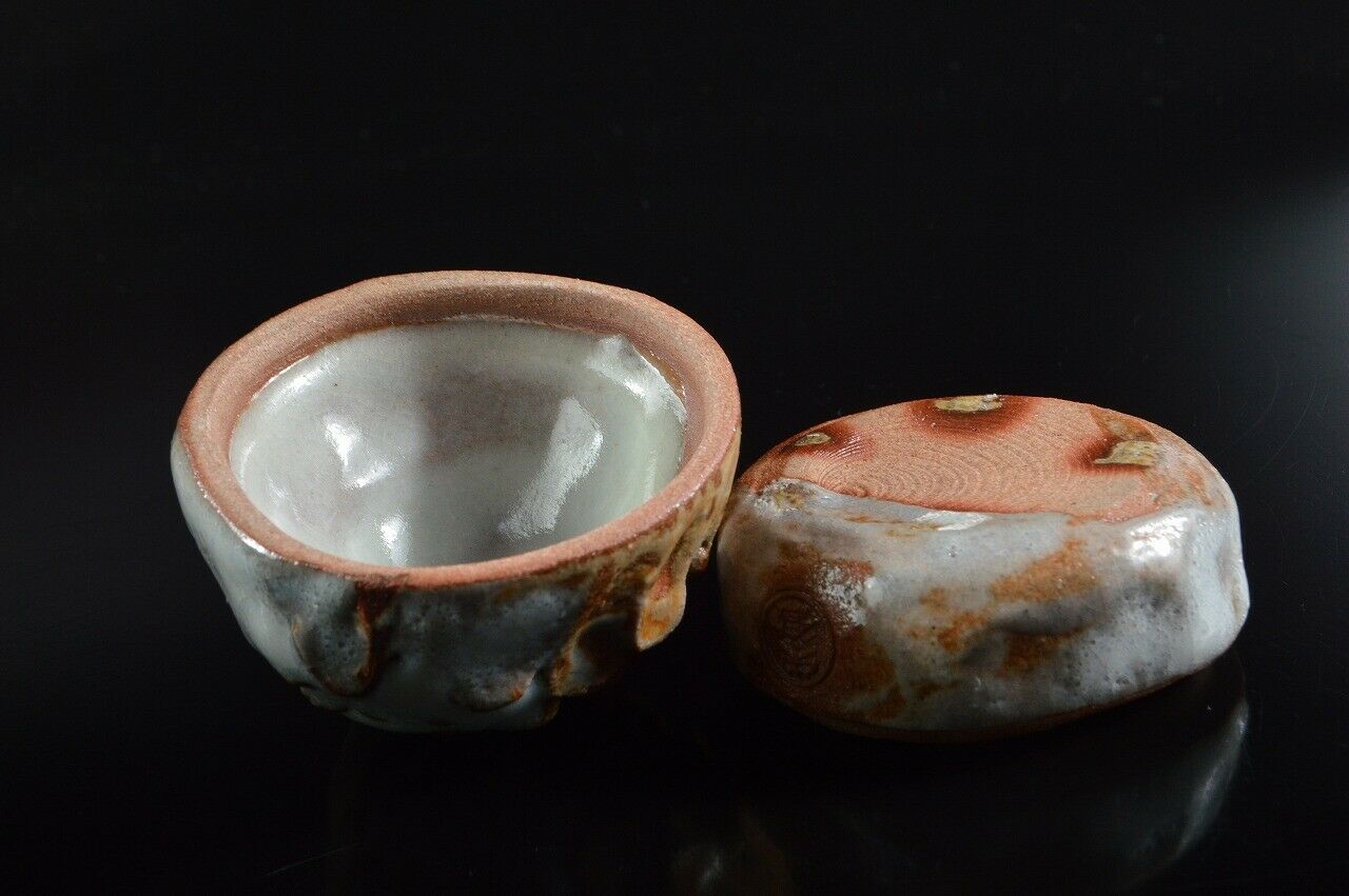 There are no chips or cracks and condition is mint. Comes with the original quality paulownia tomobako with kiln stamp and calligraphy on the lid. The kogo is stamped with his mark consisting of the kanji 栄 and 徹 meaning Eitetsu. Please see a translation for the calligraphy on the below below.