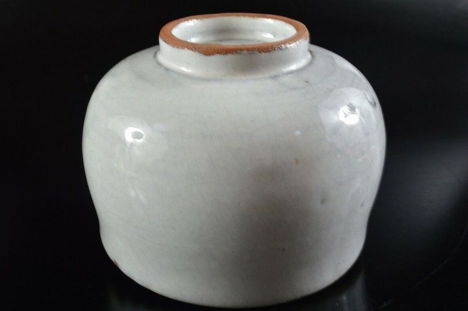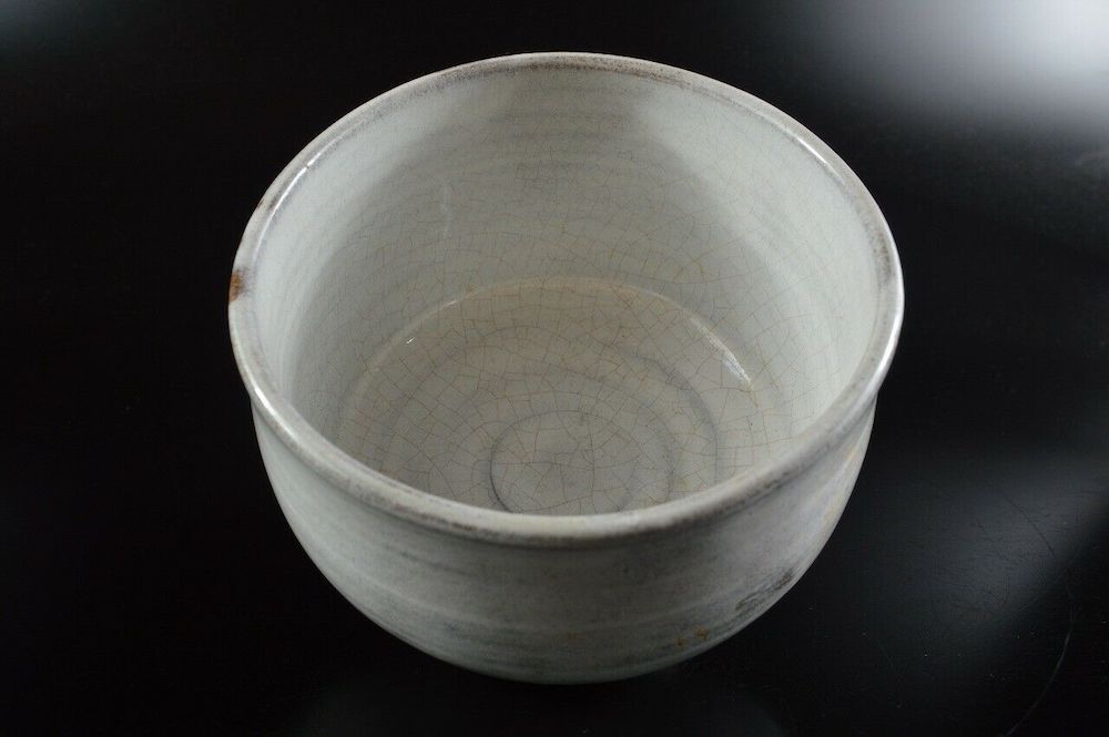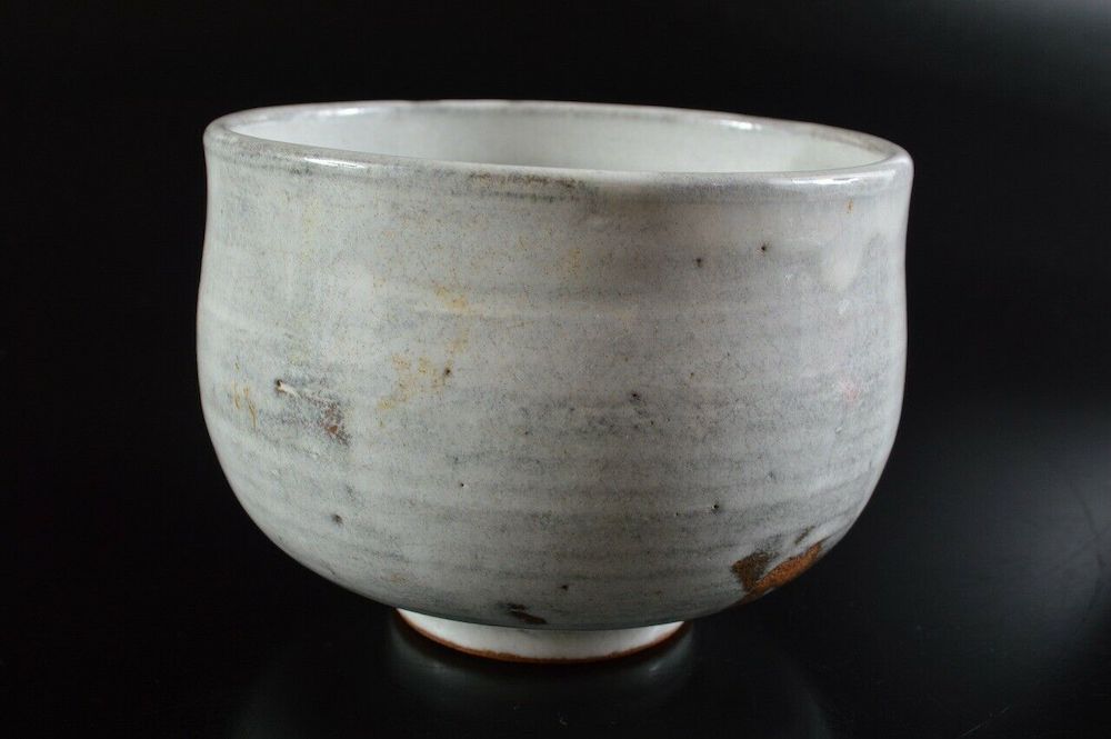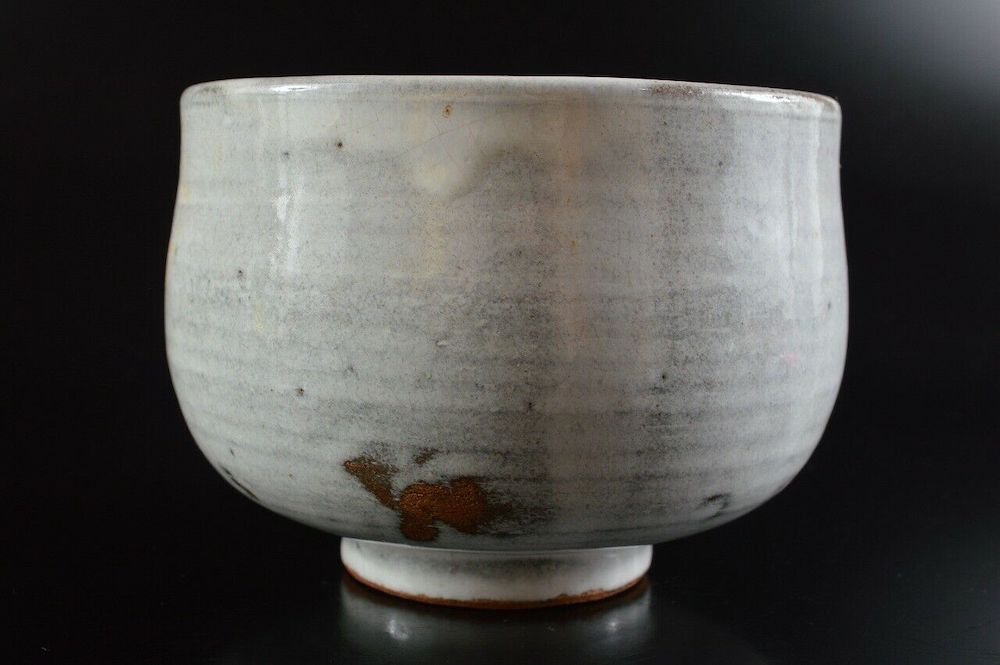 This is an antique Agano chawan or ceremonial tea bowl with a shiro – white kobiki (at times spelled; kohiki), kind of glaze. Irregularly applied around the bowl except for where the koudai or foot ring touched the saggar. Agano ware is made in what is modern day Fukuoka prefecture. Specifically it is said to have arose in 1602, in and around Fukuchi, Kawara and Ōtō town, in Tagawa district. It was counted as one of the Enshū nana gama during the Edo period because it was loved by tea masters and enthusiasts alike. Agano ware specializes lie in its variety of enamels used and yohen effects which are changes natural patterns produced by the glaze interacting with the fires of the kiln.