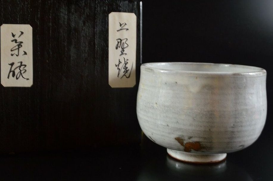 The chawan, sealed with the spiral, has no chips or cracks. It shows some signs of use but condition remains excellent. Comes with the original high quality shiho san paulownia tomobako or storage box with calligraphy on the lid. The storage box has been lacquered black with urushi – Japanese lacquer which is extremely durable and in excellent condition.