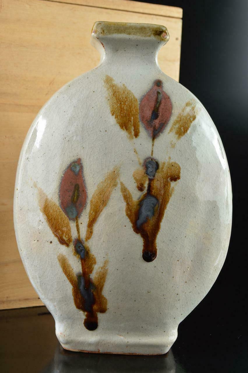 Absent of chips or cracks. Condition is excellent and comes with the original high quality paulownia tomobako, storage box of which the inside of the lid bears Mitsuru Ichiro’s calligraphy and seal. The storage box has the slots to hold a cord but currently does not have one.