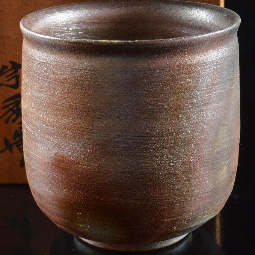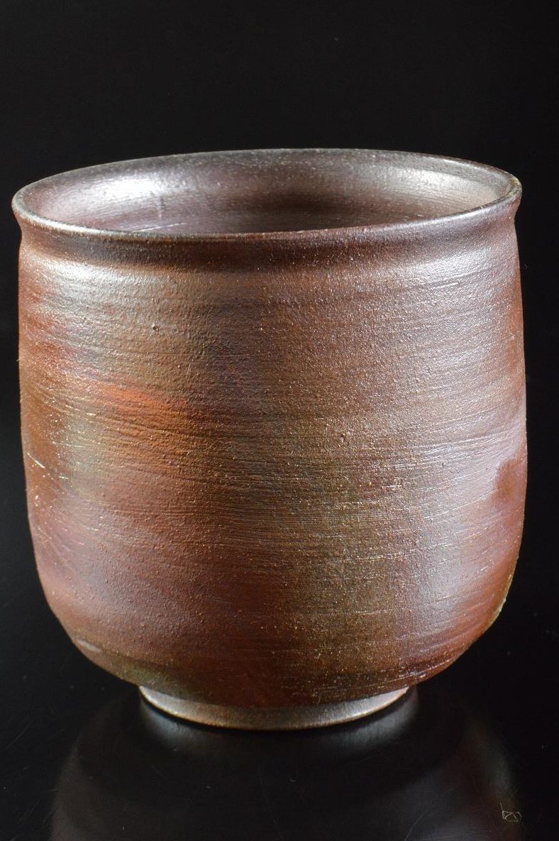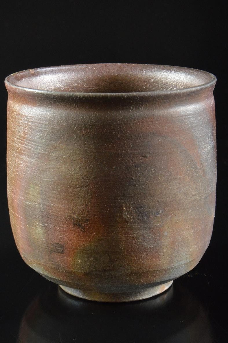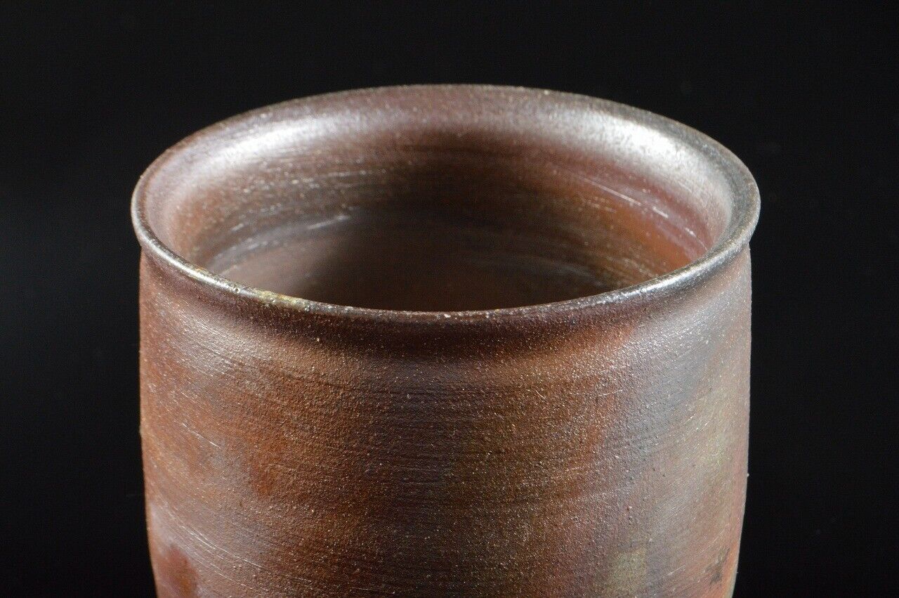 This is a quality Bizen yunomi or tea cup made by the female potter Soshu Yamamoto. Finely shaped and expertly fired, evidenced by the fine shapes and hues acquired through wood-firing. This almost silvery sheen is termed ‘sangiri’. Soshu Yamamoto is the wife of Bizen Living National Treasure Toshu Yamamoto. Together they work from the Bishuu-gama or Bishuu kiln in Bizen. The Bishuu-gama kiln and workshop were founded in 1974 at the suggestion of the famous Living National Treasure Toshu Yamamoto by his eldest son, Yuichi and his wife.