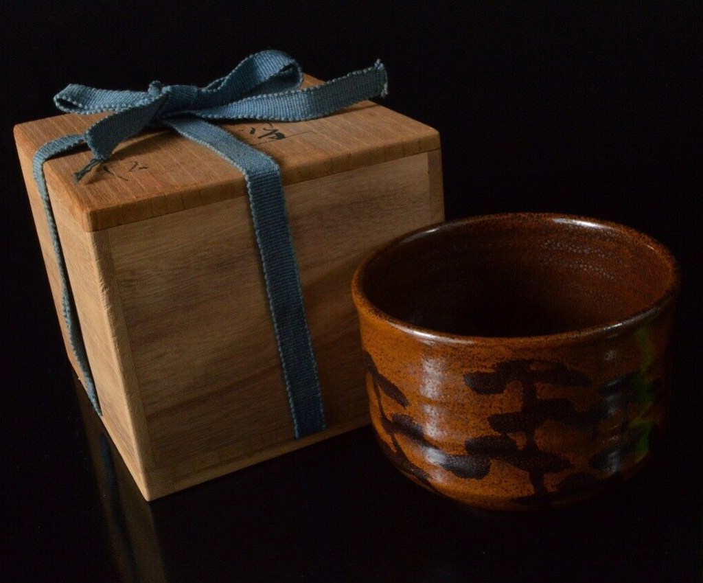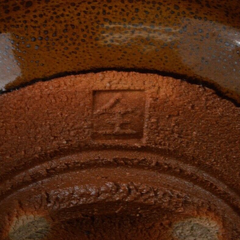A superb yuteki – oil-spot tenmoku chawan or ceremonial tea bowl by Zenko Yasuda. The bowl is surprisingly light and the formations seen in the glaze show just why exactly – tenmoku is called an ‘oil spot’ glaze. His civilian name was Masahiro Yasuda and he was born in Kyoto in 1926. Yasuda Zenko studied at the Kyoto Craft & Fabric University where he specialized in the making and building of kilns. Afterwards he studied pottery under the 6th Kiyomizu Rokubei (1901-1980). After going independent he build a kiln called Rokushin No Kama in Kyoto. Zenko Yasuda created unique and distinctive stoneware using complex glazing techniques. He passed in 2011 at the age of 86. A well respected 20th century Japanese potter.