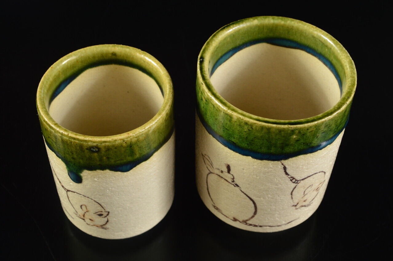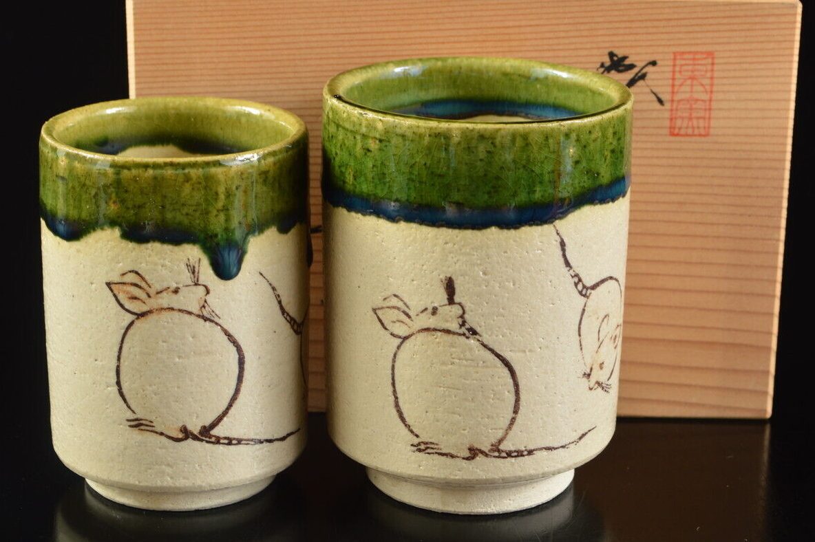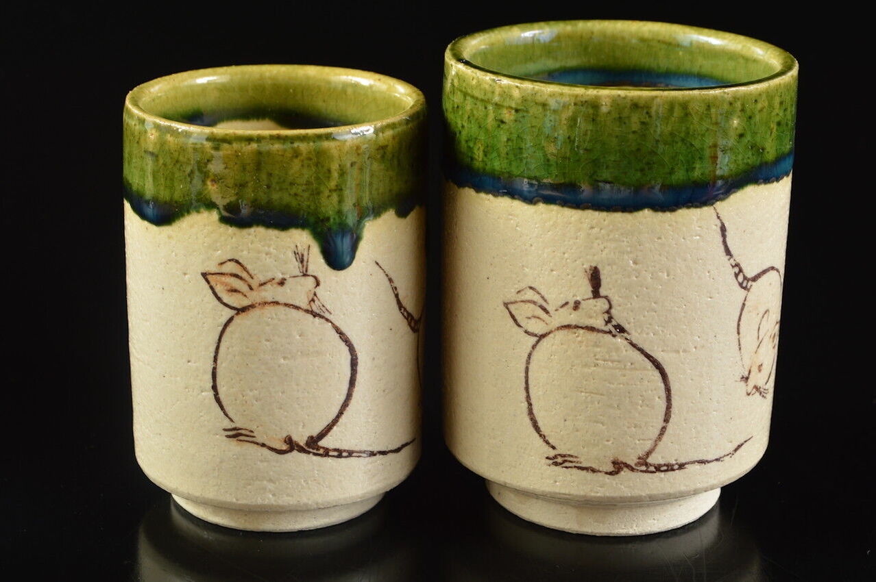 Some cultures hold a benevolent (healthy), superstition regarding the way mice are seen, holding symbolism that goes deeper than simple animals or mere rodents. Symbolism allocated to them during time, representations in historic and modern art. In Japan mice are a symbol of innocence and are said to bring wealth and good fortune where other places link it to black magic and the dark, medieval times where Europe was suffering under the plague. In a welcome, lighter theme these yunomi convey a homey atmosphere and represent the mouse as a symbol of fertility, longevity and relationships.