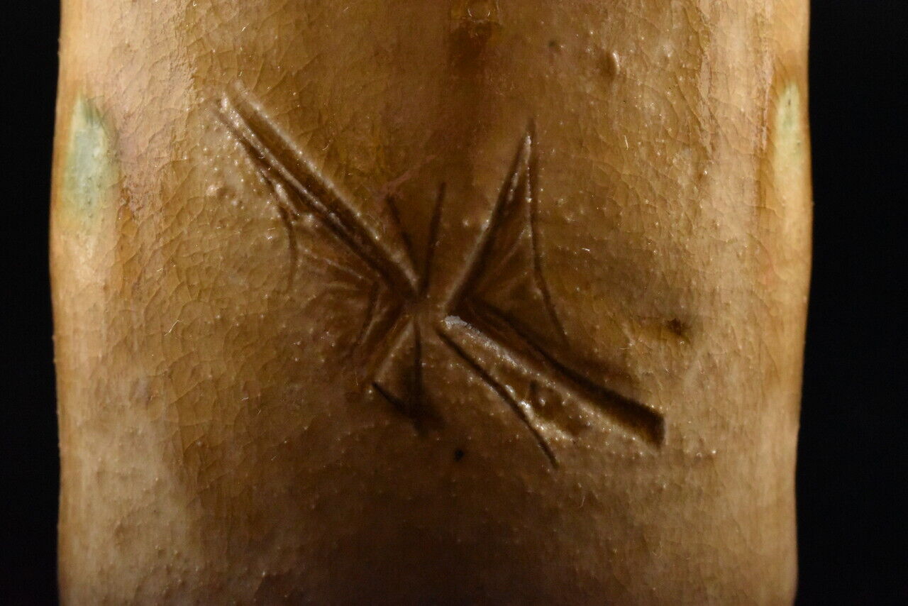 These yunomi are unused and as such condition is mint. Both cups are signed Sho saku inside the koudai or foot-ring. Accompanied by the original, corded paulownia tomobako or storage box of which the lid of the box bears the potter’s stamp and calligraphy. Additionally there is a a pamphlet with background information on the potter.