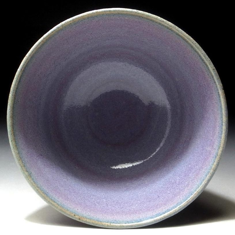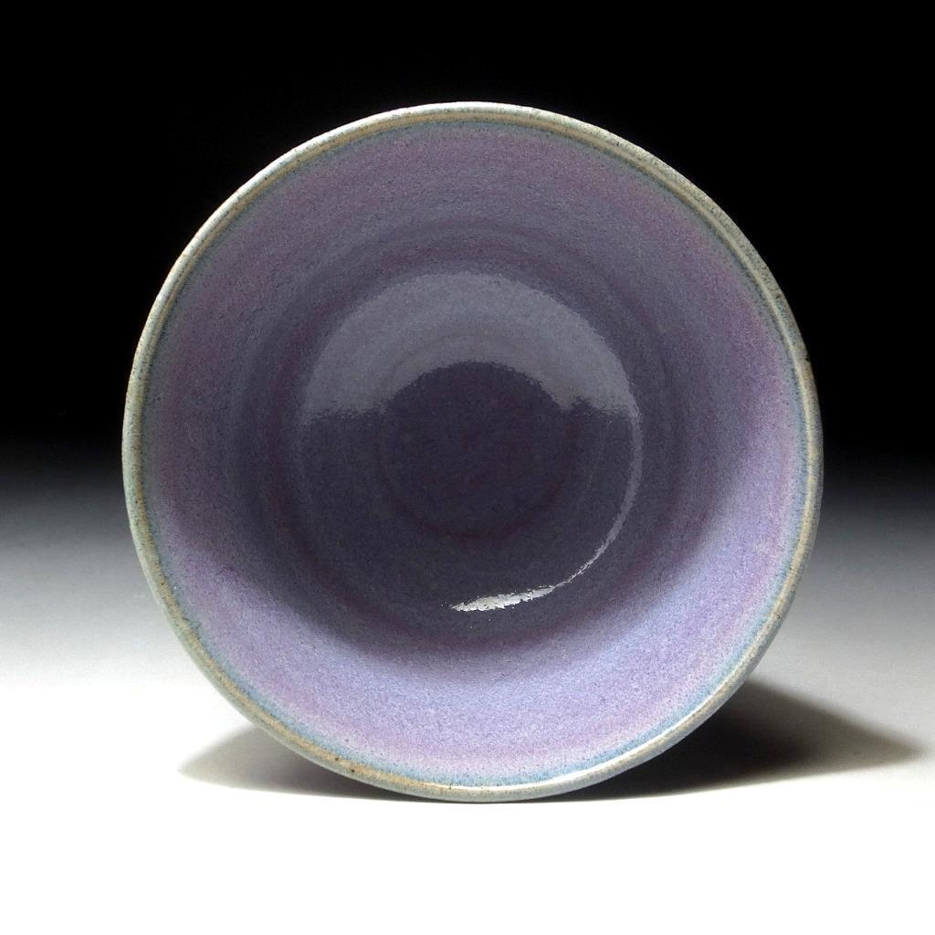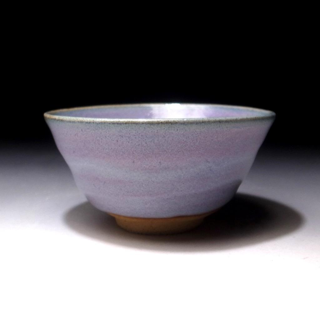 This is a murasaki – purple glazed Kyo ware chawan, ceremonial tea bowl by distinguished artist Miyashita Zenji (1939-2012). As the eldest son of master potter and porcelain artist Miyashita Zenju (1901-1968), he went to Kyoto Municipal University of Arts and studied under the Living National Treasure potters Tomimoto Kenkichi and Kondo Yūzō. This is a fine work that was thrown on the wheel in half cylinder shape and fired with a purple glaze. The glaze shows much variation as the photos attest to and could be termed ‘yukari’ which is a name that is associated with the colour purple, beauty and a deep connection. Numerous different terms and words are used in Japanese to describe the colours and atmosphere as can be seen below.