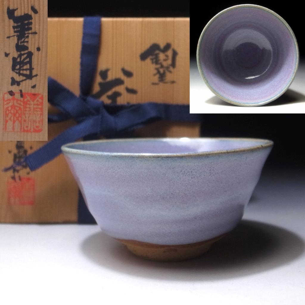 The chawan bears the master’s seal and condition is mint. Comes complete with the original, quality shiho san paulownia tomobako or storage box with kiln stamp, calligraphy & artist signature on the lid. Also includes a pamphlet with a biographical overview of this artist’s career.
