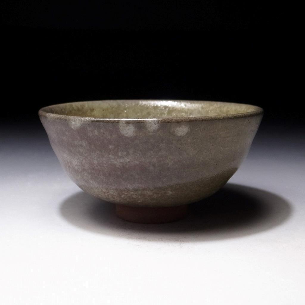 This is an Akahada chawan or ceremonial tea bowl made by the 8th generation potter Masayoshi Oshio. Third son of Masayoshi Yashiro, also a potter. Masashi Oshio is now the representative of this lineage. He graduated from Nara College of Art Ceramics Department in 1990 and is still active. Every part of creation is done by the potter himself, starting with collecting and processing the rare soil from Mt. Akahada in Nara. Akahada ware is characterised by the beautiful reddish colour of the clay that is produced when the clay is unglazed. In particular, the scenery with a soft reddish tinge between the milky white glaze and the unglazed surface is a unique flavour of Akahada. In addition, the elegant Nara-e painting has also gained popularity as a style unique to the Yamato pottery. Personally this bowl and its glaze remind me of the translucency of celadon with much activity, both in colour and formations or patterns. Also as the name suggests; aka meaning red, hada translating to skin or surface; its the quality of the clay that created this type of pottery.