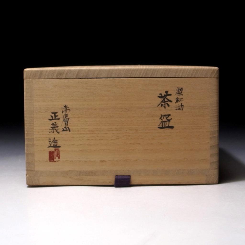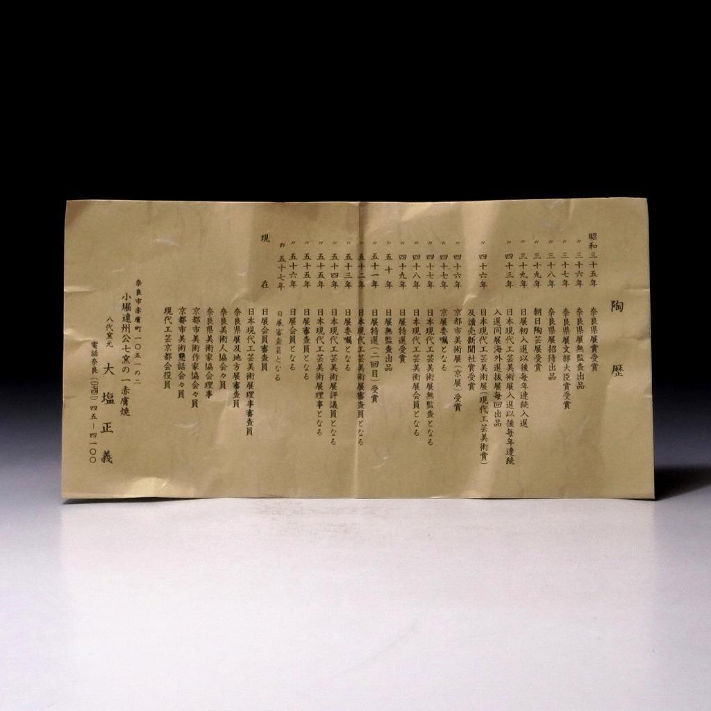 The chawan has no chips or cracks condition is mint. Comes with the original high quality, shiho san paulownia tomobako or storage box that bears the kiln stamp and calligraphy on the side, a dedicated tomonuno or stamped tea cloth and a pamphlet about the potter.