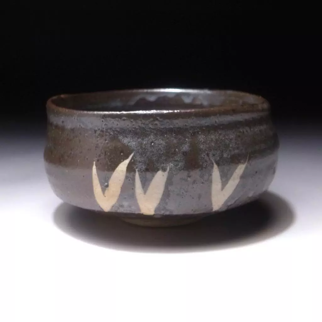 This is a fine nezumi or gray Shino chawan or tea bowl by the 2nd generation master-potter Shunji Kato (1892-1979). He was born to the first generation and studied with his father, eventually inheriting the title of Kato Shunji in the year 1912. A book about this famous potter entitled: “The Works of Kato Shunji” was published in Nagoya in Showa 55 (1980). Like his father he mainly worked making tea bowls and innovated the use of traditional Seto ware glazes. Shunji Kato stems from Seto City in Aichi prefecture and during his long life he became a potter of great renown. He was awarded the title Intangible Cultural Treasure of Aichi prefecture in 1975. A fine piece that speaks for itself.