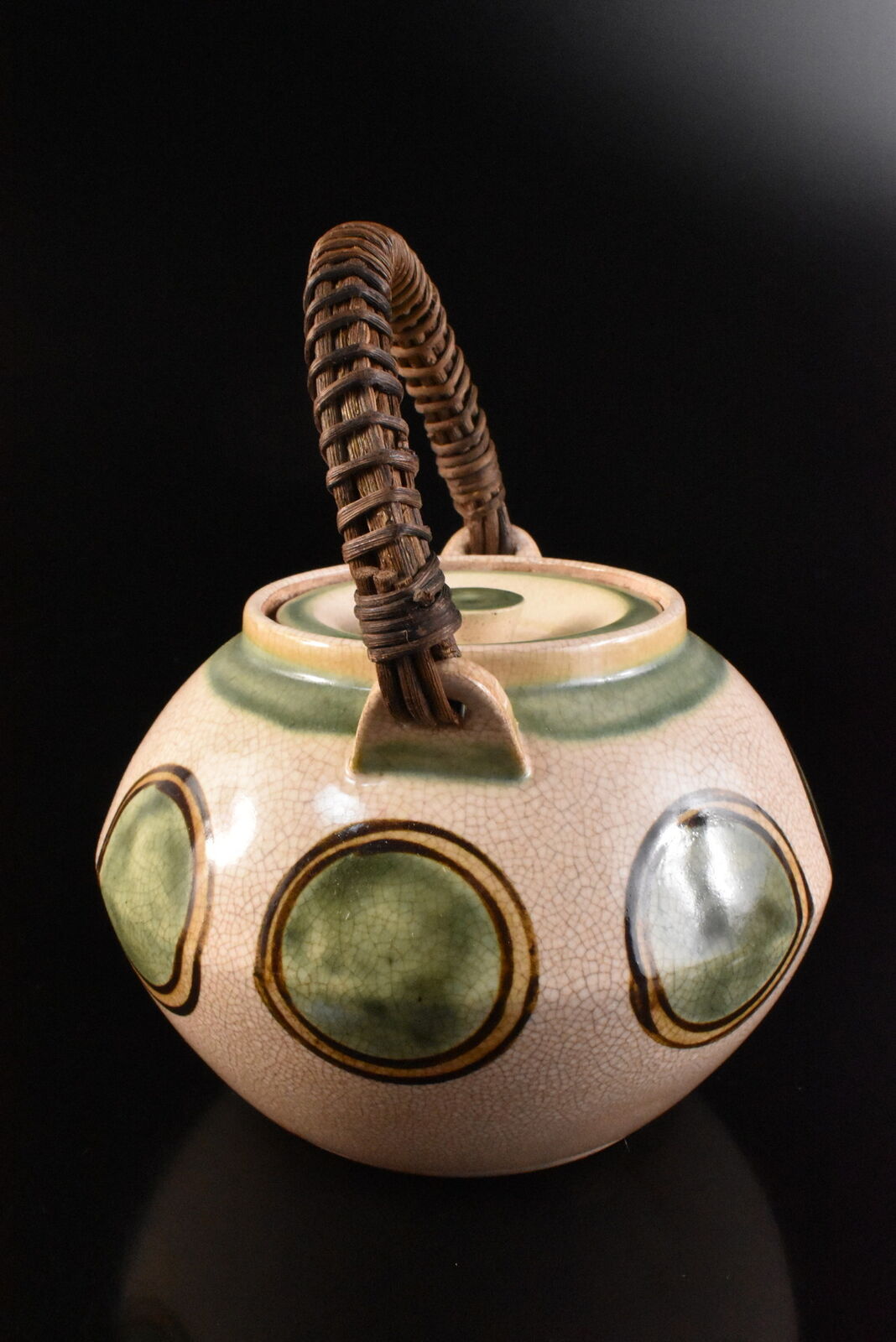 Kenkichi Tomimoto together with Bernard Leach studied under Kenzan 6th a dynasty of master craftsmen, they were both chosen by their master to be jointly the 7th Kenzan. He briefly studied in England and on his return to Japan, he built a kiln of his own and devoted his artistic skill to porcelain making. In 1944 Kenkichi Tomimoto became a professor at Tokyo School of Fine Art and in 1950 at the renowned Kyoto City College and in 1958, its director. Towards the end of his life he received two of the highest honours, the designation as a Living National Treasure and the Order of Cultural Merit – both for his activities in porcelain making.