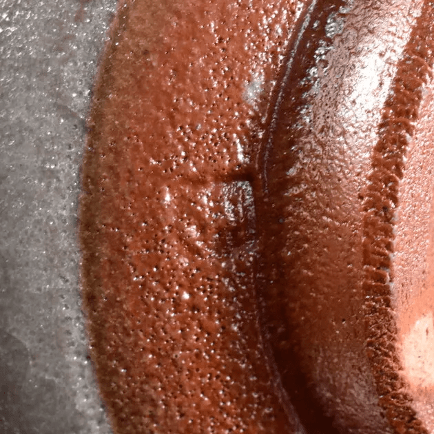 This is a very fine chawan by Kyoto master potter Zenko Yasuda. It is a larger than average work, hefty but well balanced in hand. The glaze is his special recipe of his own devising. It has clear tracings to his teacher; the 6th Kiyomizu Rokubei. On this example the glaze is particularly thick, showing a lot of detail and variation throughout. A peculiar triangular patch creates a definite front for this chawan.