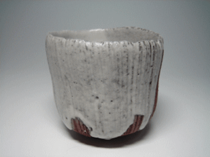 This is a rare Bizen yunomi or tea cup, decorated with vertical strokes and glazed white by one of my favourite potters; Kenji Takenaka. Circular in form with an undulating rim, having it in your hands it will quickly become a favourite piece as its smooth to the touch and masterfully shaped to connect. Kenji Takenaka was a jeweller and made the switch in the middle of his career and is now a full fledged potter. Even though starting potting late in life, he is now highly acclaimed and works hard to come by. His work is detailed and shaped with the same level of care as I imagine his jewellery shows. Hard to describe, this potter won me over the first time I held one of his cups. Bizen wares are fired slowly over a long period of time. Firings take place only once or twice a year. They require the kiln fire to be kept lit and burning for approximately 10 to 14 days involving long hours and literally tons of wood. Please see the following biography of this artist.