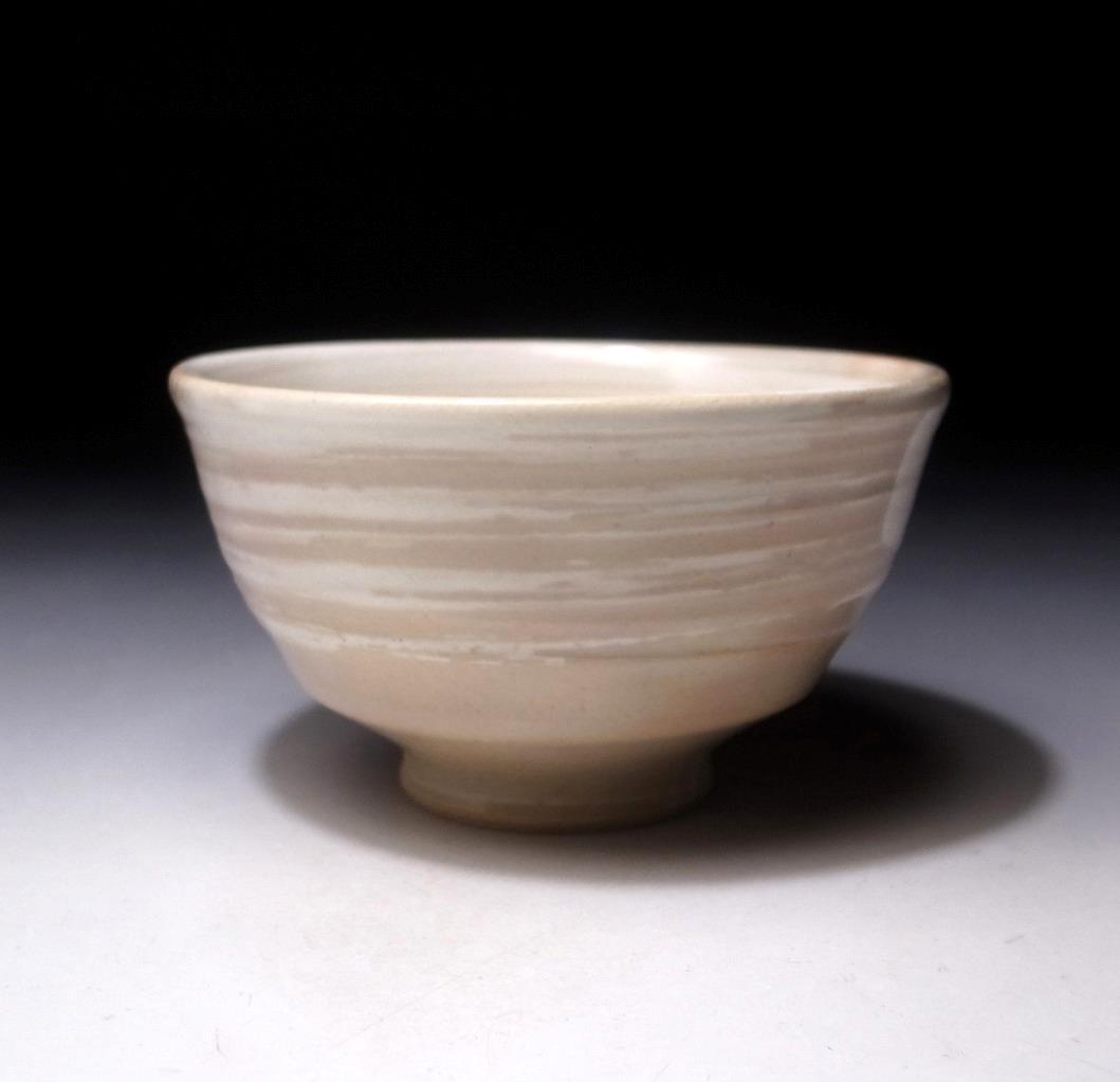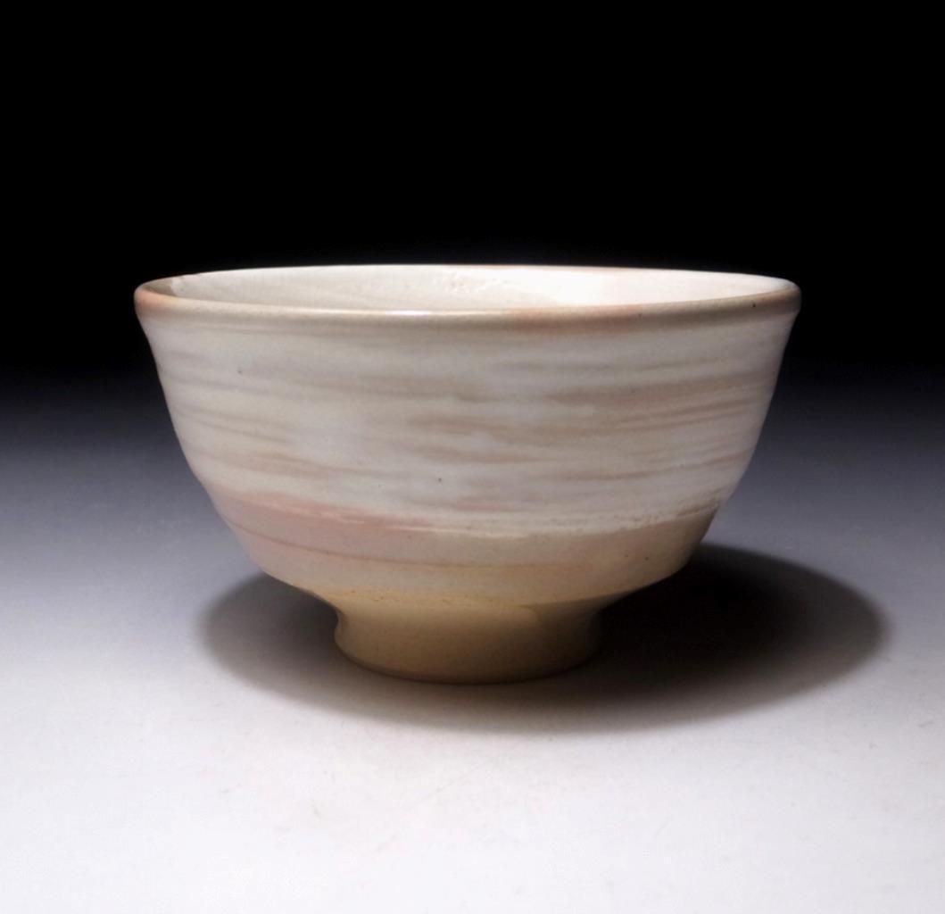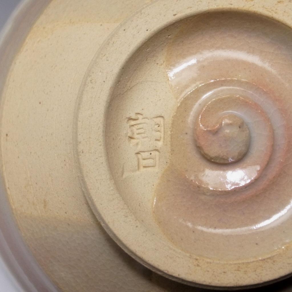 Matsubayashi Hosai succeeded his father as the subsequent 14th generation after his father (who was the 13th generation), passed in 1947. Asahi yaki or ware bears the distinction of being one of Enshu’s seven famous kilns. Works focus on kasé and hanshi, honte, yohen effects (youhen), which are colour changes in the kiln during the firing stage using fern ash, my feeling is that this bowl is an example of fern ash glaze combinations. Best way I can describe the glaze is likening it to satin. There’s a soft, delicate quality evident in its outcome. The 14th generation Matsubayashi Hosai is known to be particularly skilled in the use of decorative patterns and textures such as amime (mesh patterning), kushime comb patterns and hakeme brush stroke decorations of which this is an example.